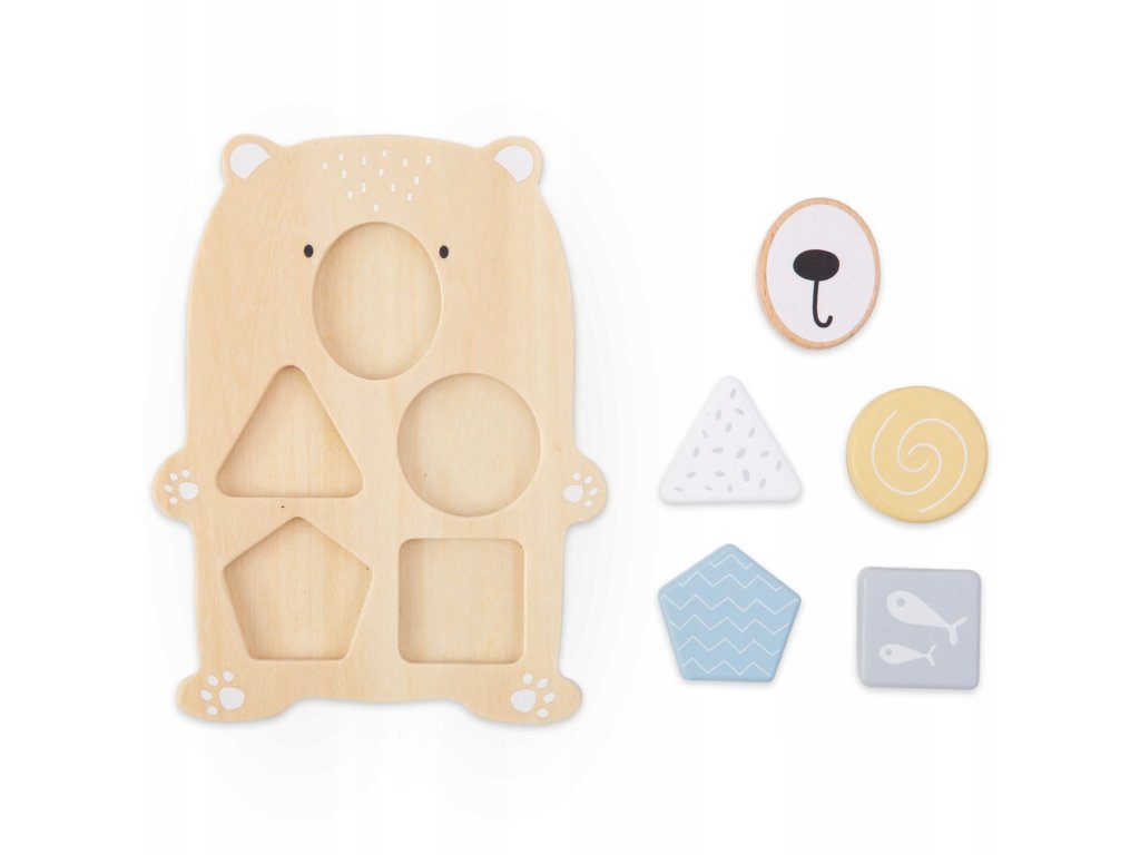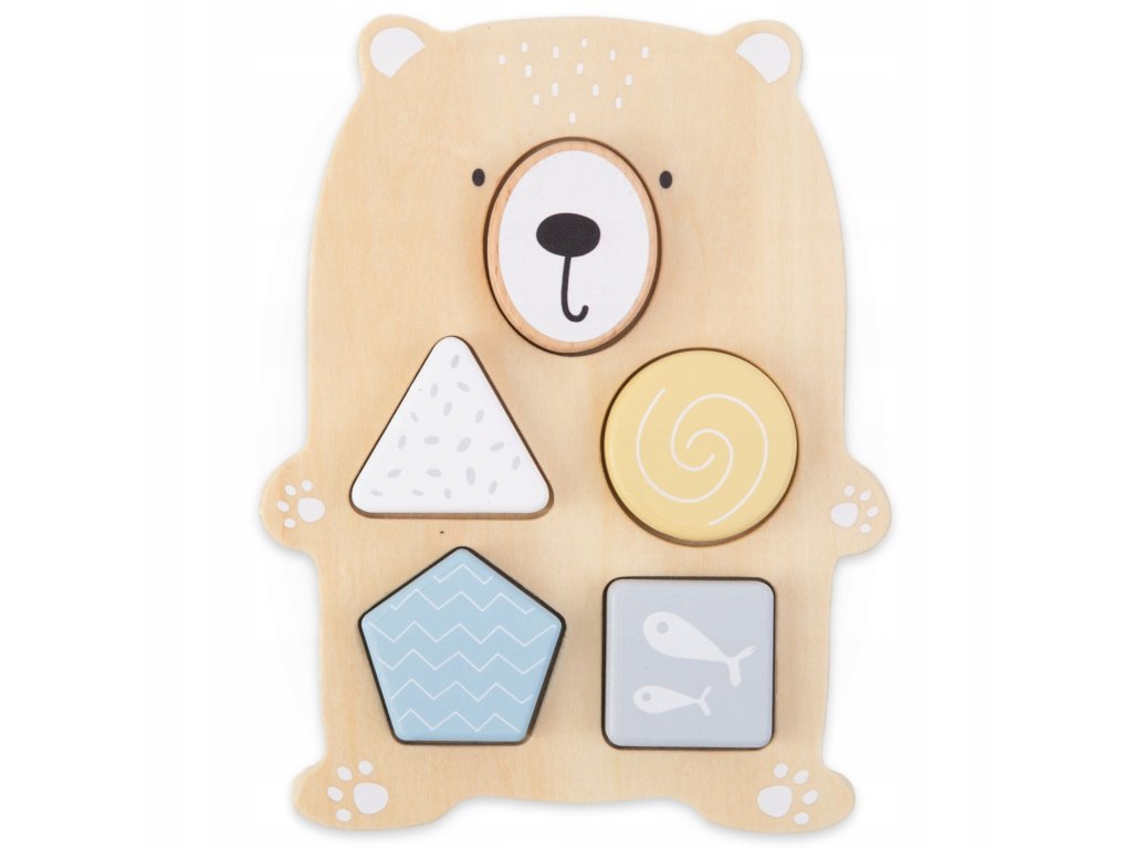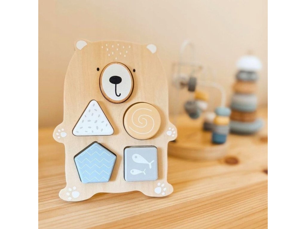- Třídič tvarů Medvídek – trénuje rozpoznávání tvarů a barev, rozvíjí pozorovací schopnosti a zručnost.