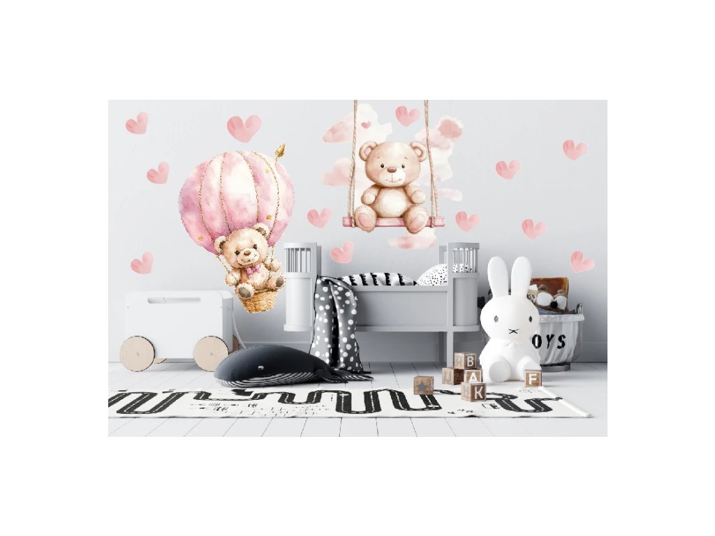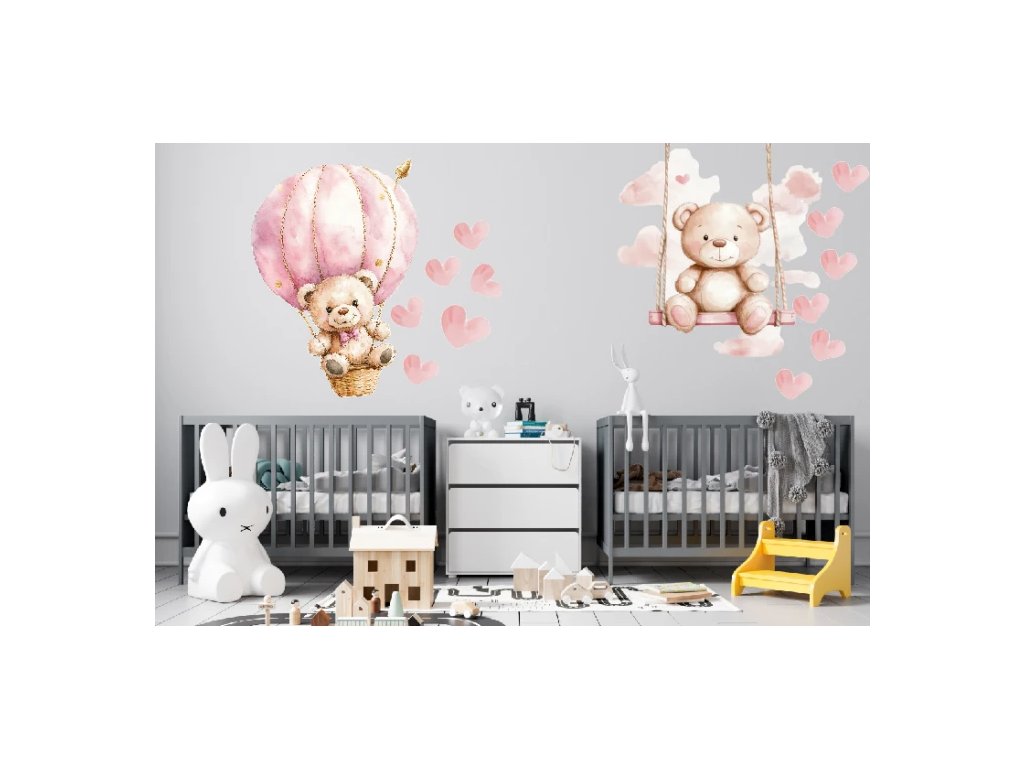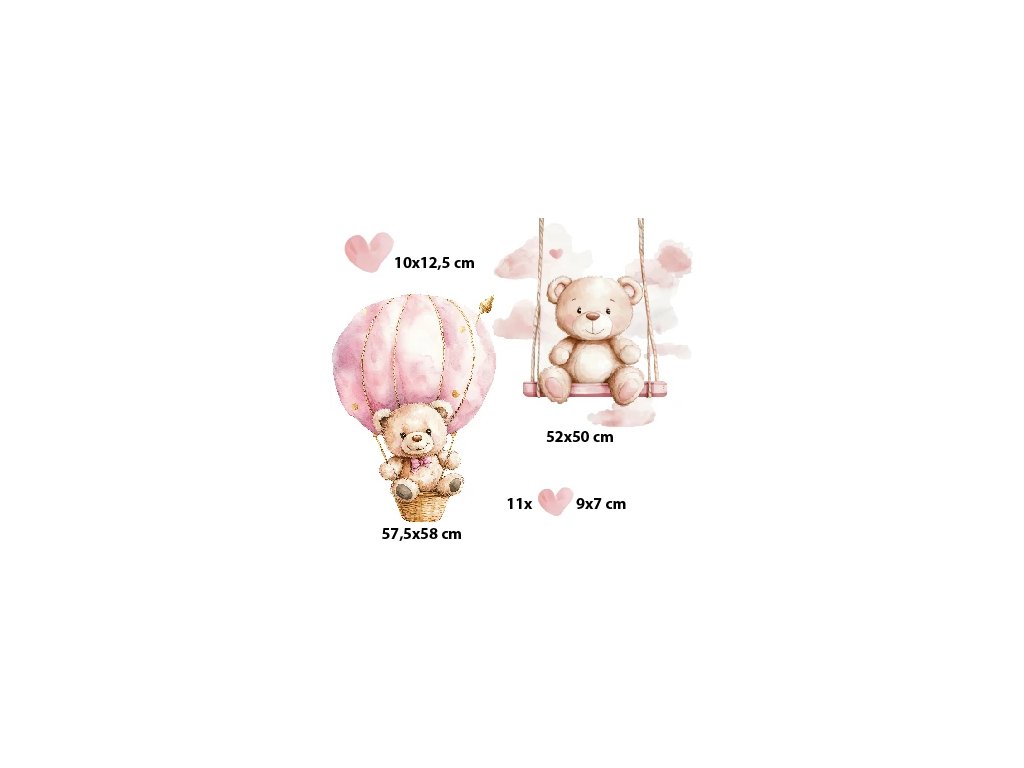 Samolepka na zeď – plyšoví medvídci a srdíčka