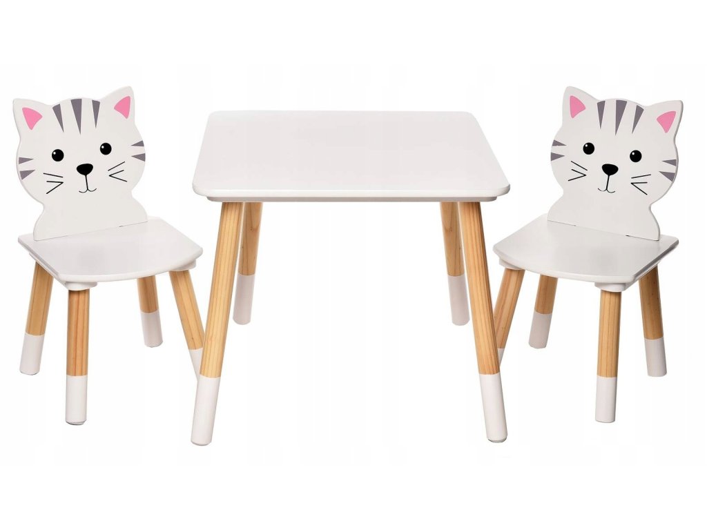 Sada Stolek se dvěma židličkami – Roztomilé kočičky je ideální dětský nábytkový komplet, který spojuje funkčnost, bezpečnost a jedinečný design.