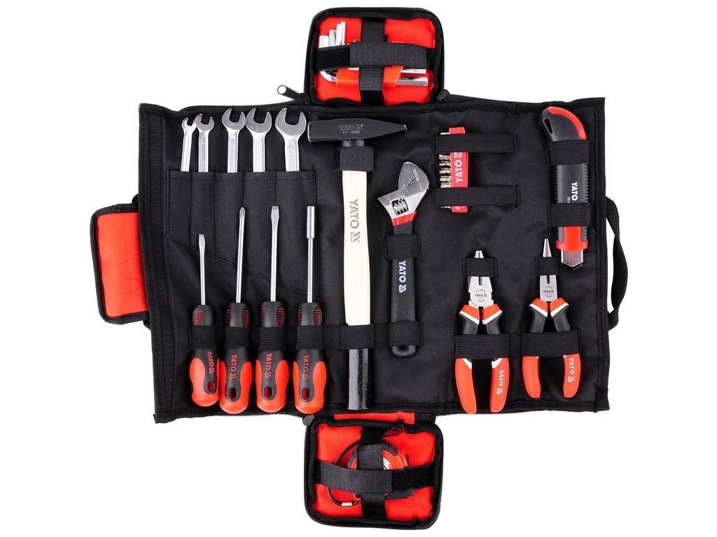 Sada 44 ks nářadí v praktické brašně ze zesíleného materiálu. Obsahuje celou řadu nástrojů vhodných jak pro údržbáře, tak i pro běžnou dílnu či domácnost, nebo kamkoliv na cesty.
