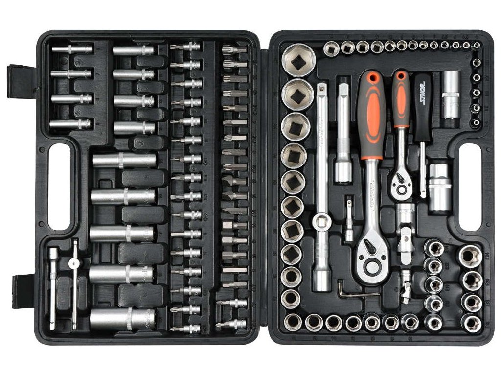 Profesionální sada nářadí, zhotovená pro potřeby specializovaných autoservisů a mechanických služeb. Nástroje jsou precizně vyrobeny z materiálů, které zajišťují jejich spolehlivost. Nádstavce vybavené systémem AS-Drive, zvyšujícím maximální točivý moment o 25 %, s plnou ochranou hran matic, nádstavce s dvoubarevnou povrchovou úpravou. Ořechy byly vyrobeny metodou zápustkového kování a před procesem kalení byla kalibrována pomocí přesných měřidel a kontrolních zařízení. Sada umožňuje práce vyžadující velmi vysoké zatížení a přesnost, umožňuje provádět mnoho servisních činností spojených s povolováním a utahováním závitových spojů různých jmenovitých velikostí. Sada nářadí se skládá ze 108 prvků umístěných v praktickém plastovém kufříku, díky kterému lze sadu použít pro menší montážní práce, mechanické opravy a mnoho dalších prací v domácnosti nebo dílně.