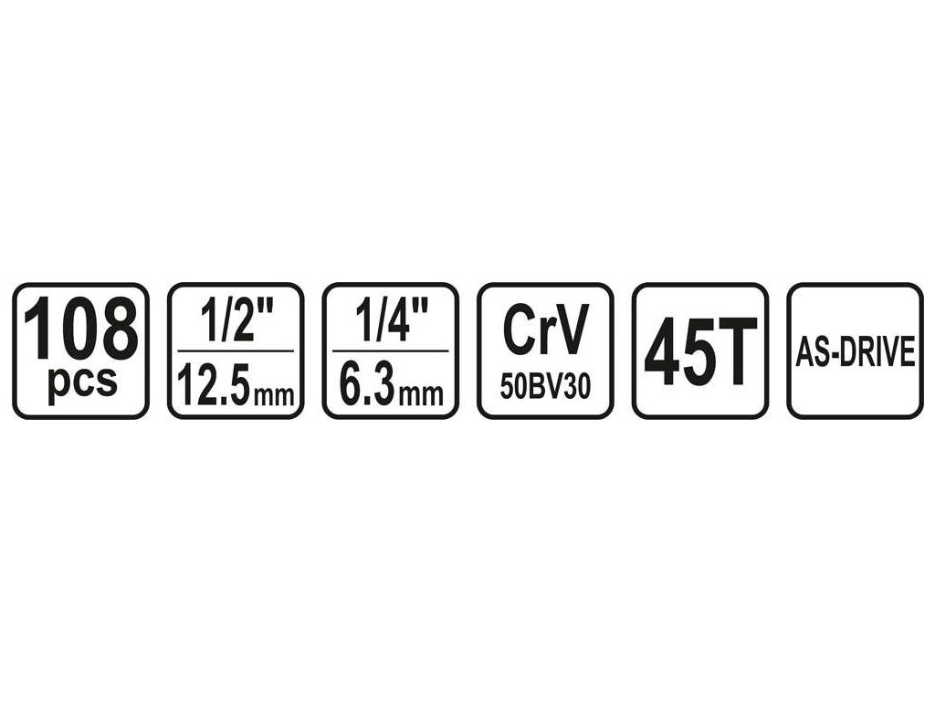 Sada nástrčných klíčů a ráčny 1/2'', 1/4", 108 ks, L