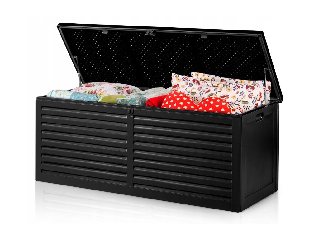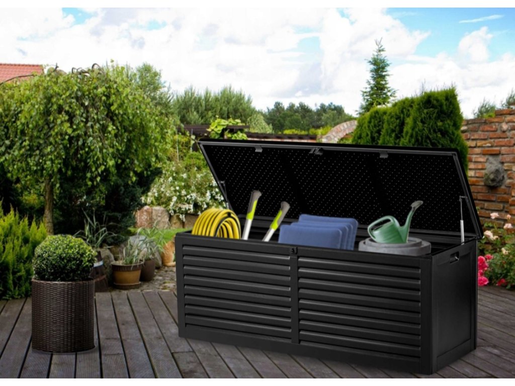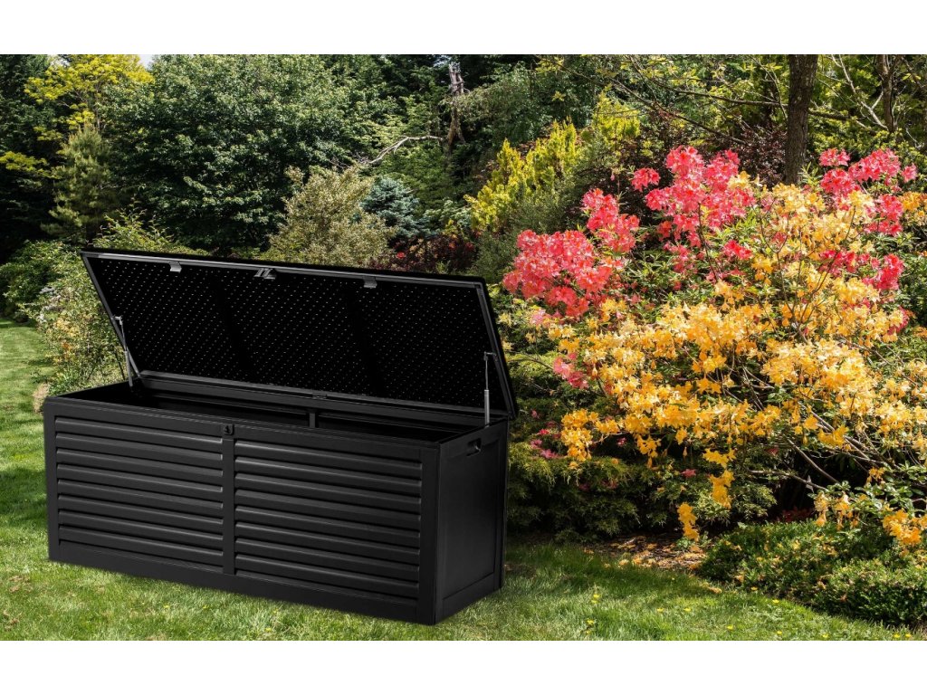 Lehká uzamykatelná plastová truhla. Ideální pro skladování polstrů, dek, polštářů, ale i květináčů a dalších věcí. Kvalitní úložná bedna je opatřena místem pro uzamknutí visacím zámkem (zámek není součástí). Truhla se dodává v rozloženém stavu. Montáž zahradního boxu je velice jednoduchá a nepotřebujete k ní ani nářadí.