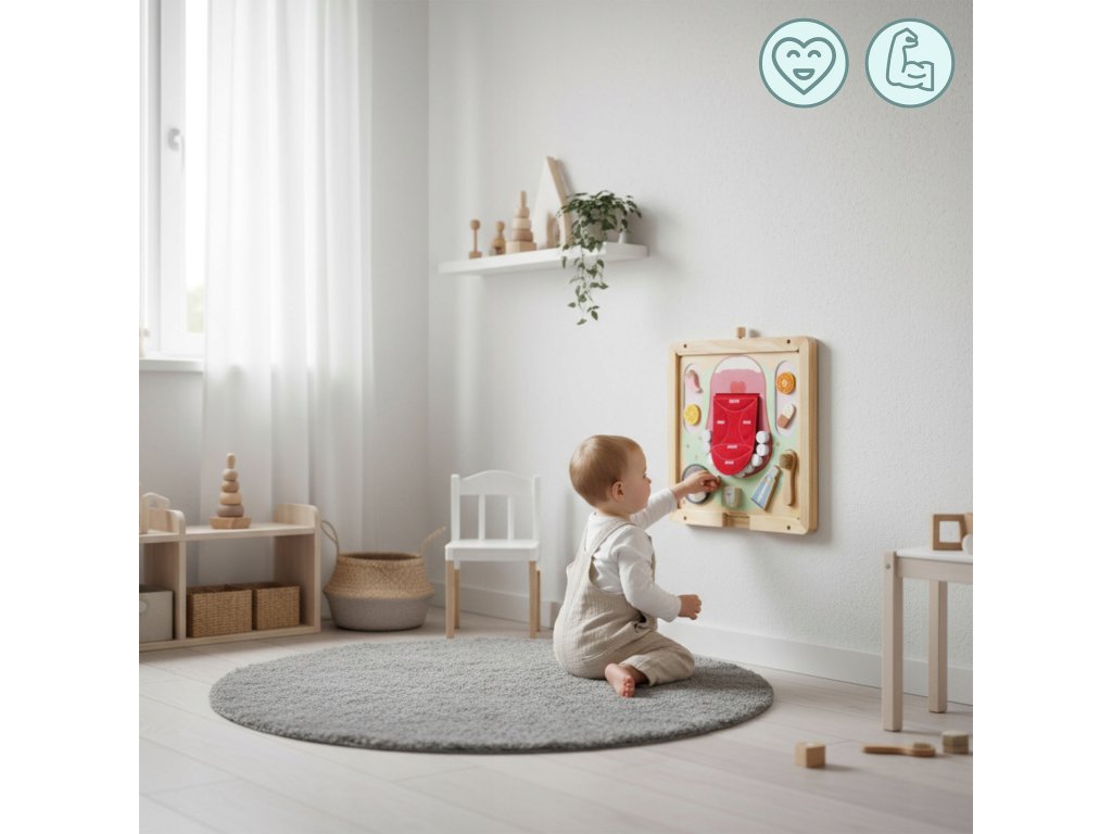 - Dřevěná vzdělávací tabule Montessori – Malý zubař