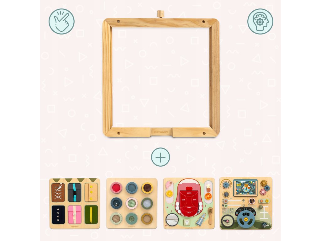 Dřevěný montážní rám je praktickým a elegantním doplňkem, který umožňuje bezpečné a stabilní upevnění vzdělávacích tabulí na zeď. Díky němu se každá tabule promění v pevné, estetické a inspirující centrum dětské zábavy.