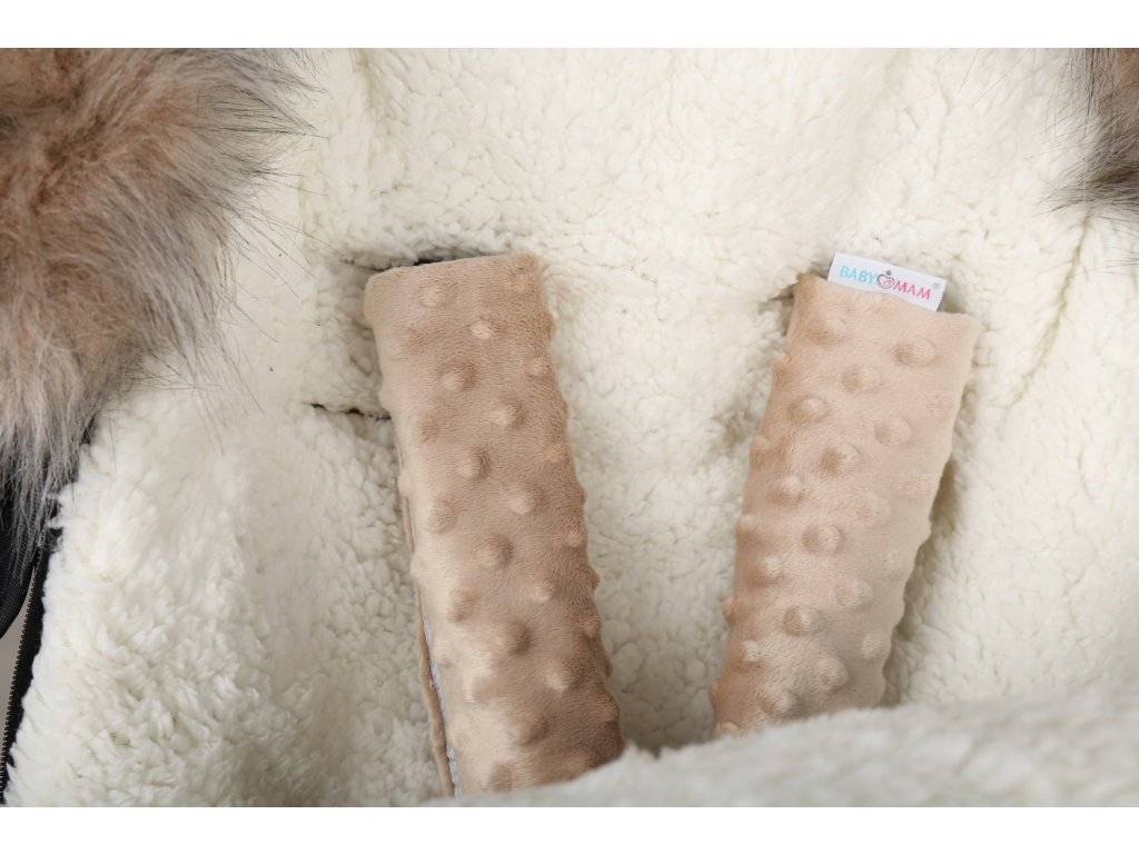 Univerzální spací pytel, připravený zejména na procházky a cesty v chladnějších dnech. Vnější strana je vyrobena z impregnované nepromokavé látky. Je vyplněn antialergickou silikonovou látkou.Vnitřní vrstva je vyrobena z hřejivého a na dotek příjemného beránka. Spací pytel je vybaven dvěma zipy, takže můžete vrchní vrstvu kdykoli sejmout a spodní část nechat jako vložku do kočárku nebo použít vrchní vrstvu jako přikrývku k zakrytí dítěte. Díky použití vysoce kvalitních vláken je spací pytel načechraný, po vyprání a po dlouhodobém používání si zachovává svůj tvar. Je měkký, lehký a zároveň velmi teplý, voděodolný a větruodolný.