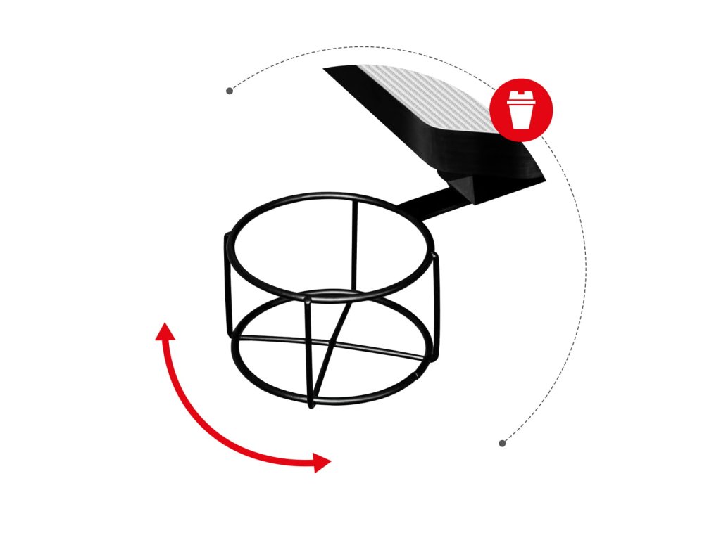 Funkční cup holder ti umožní mít oblíbený nápoj vždy po ruce – bez rizika polití herního vybavení.