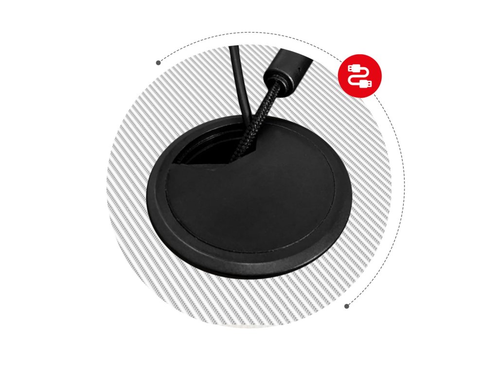 Praktický držák na sluchátka umístěný pod deskou zajistí, že tvá sluchátka budou vždy na dosah a přitom nezaberou žádné místo na ploše stolu.