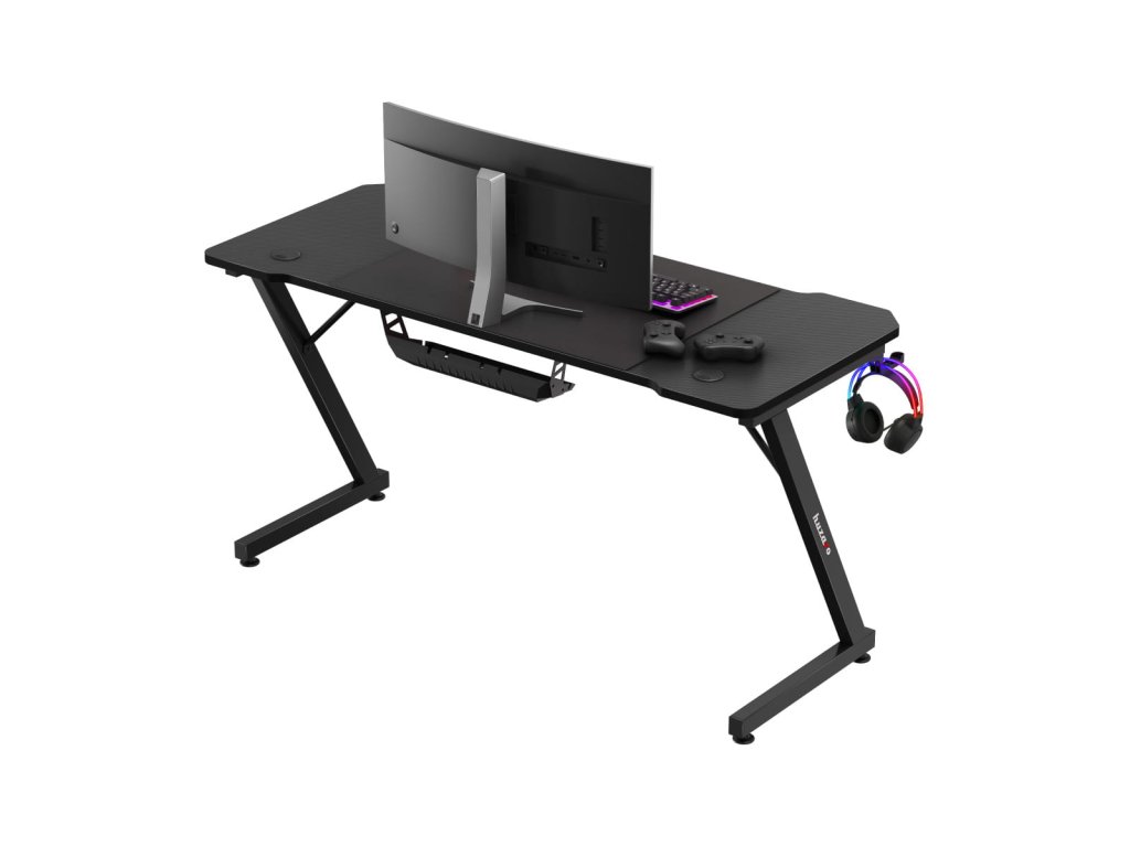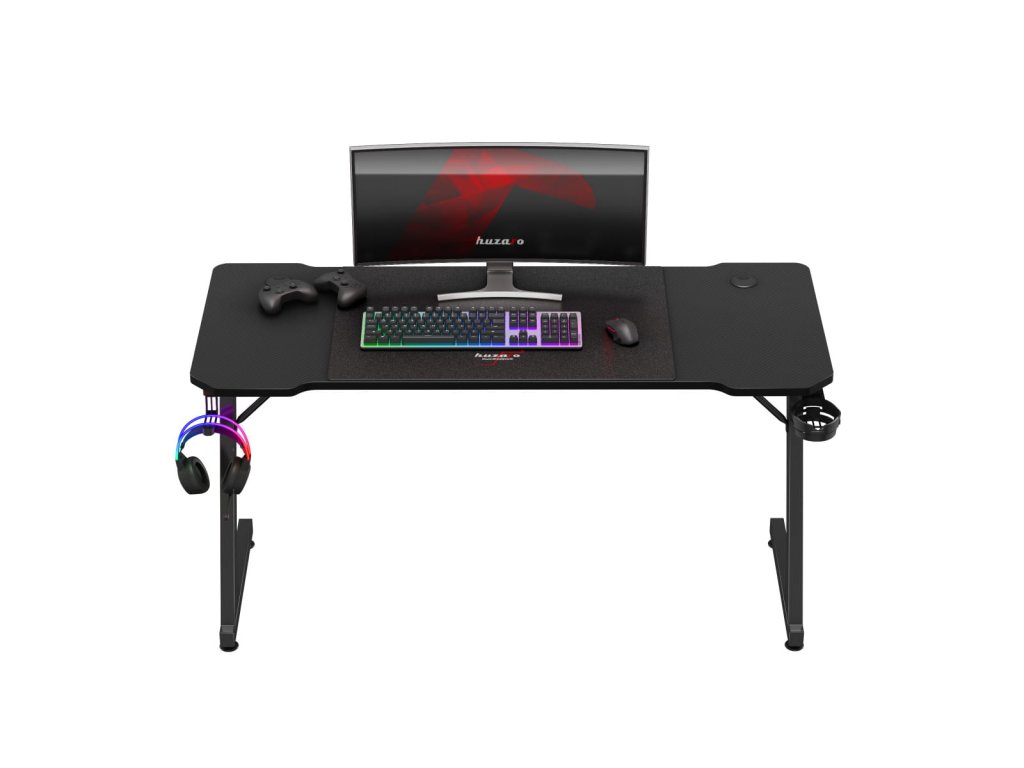 Deska o šířce 140 cm snadno pojme dva monitory, klávesnici, myš, reproduktory i další herní příslušenství.