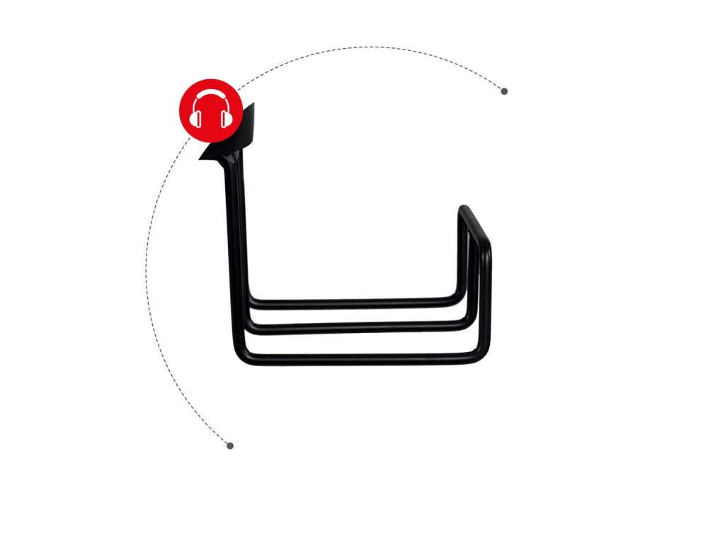 - Držák na sluchátka – bezpečné místo pro sluchátka mimo pracovní desku.