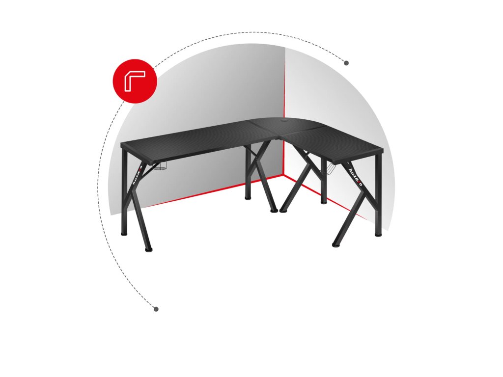 Rohový stůl pro hráče, který kombinuje funkčnost, styl a odolnost.