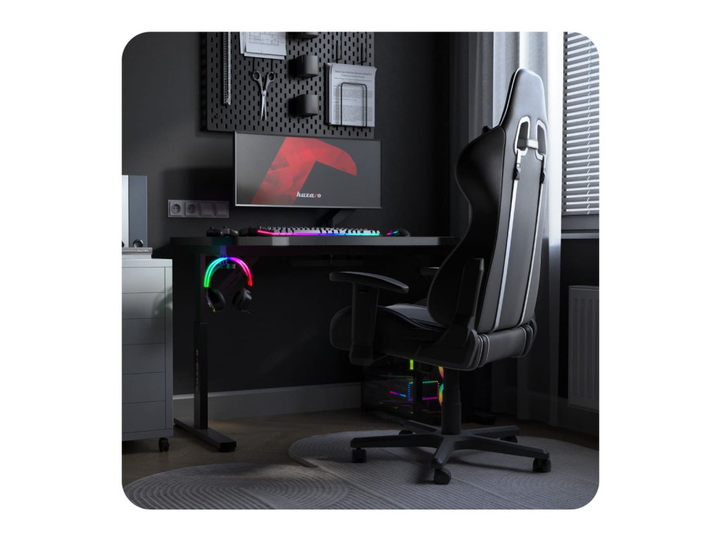 - Držák na sluchátka – vaše oblíbená sluchátka vždy po ruce, bez zabírání místa na stole.