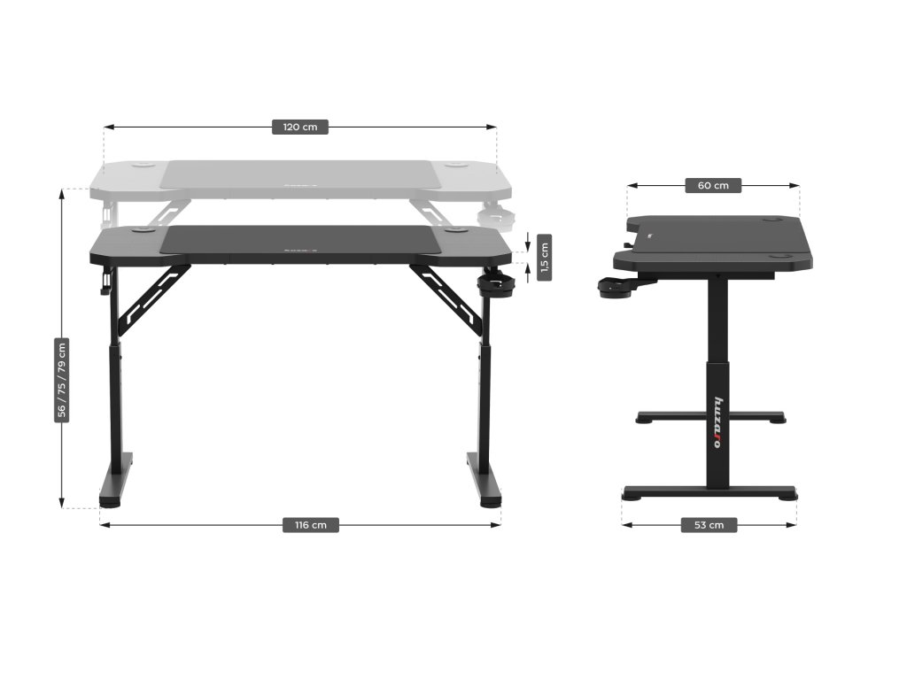 Tři úrovně výšky (56 / 75 / 79 cm) umožňují nastavit pracovní plochu přesně podle vaší postavy a stylu sezení. Správná ergonomie znamená větší pohodlí a menší únavu při dlouhém sezení.