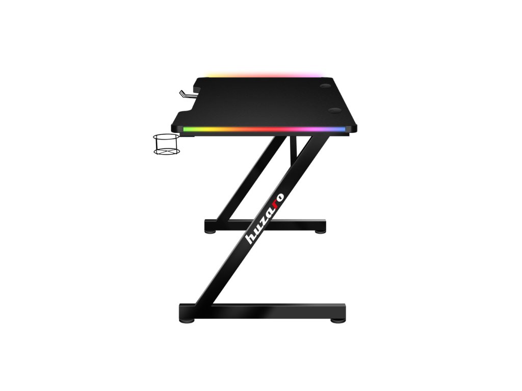 Na okrajích desky jsou umístěny LED pásky, které vytvářejí podmanivý herní efekt.