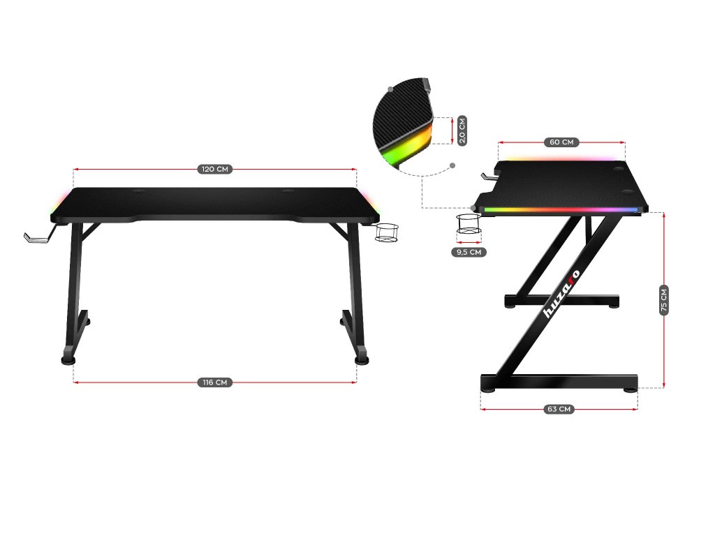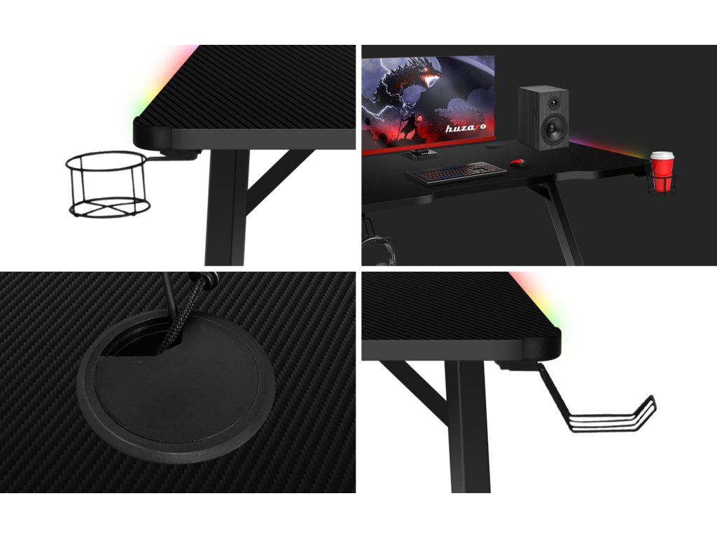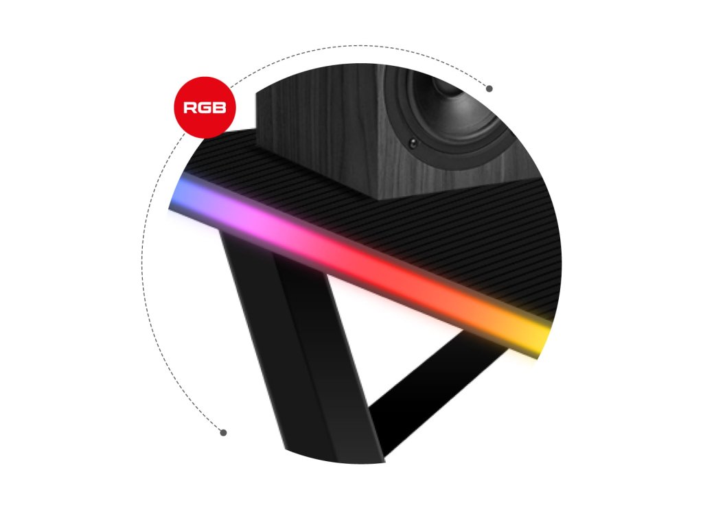 Herní stůl VELOX RGB 2.5 spojuje odolnost, praktická řešení a moderní herní styl. Je to ideální volba pro hráče, kteří chtějí mít nejen dokonale uspořádané herní místo, ale i jedinečnou atmosféru díky podsvícení RGB LED s desítkami barev a efektů.