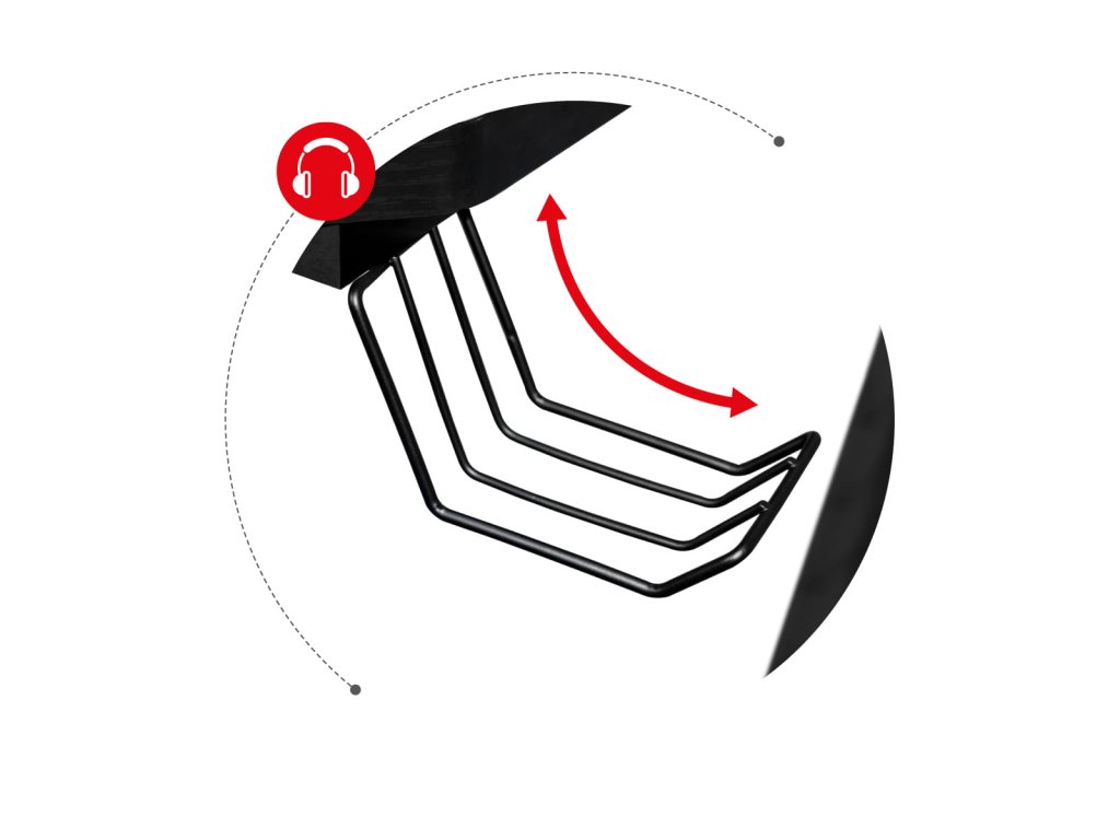 - Držák na sluchátka – headset vždy po ruce a mimo pracovní plochu.
