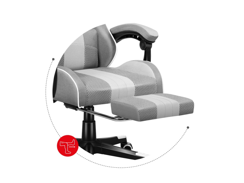 - materiálové herní křeslo s výsuvnou opěrkou nohou,