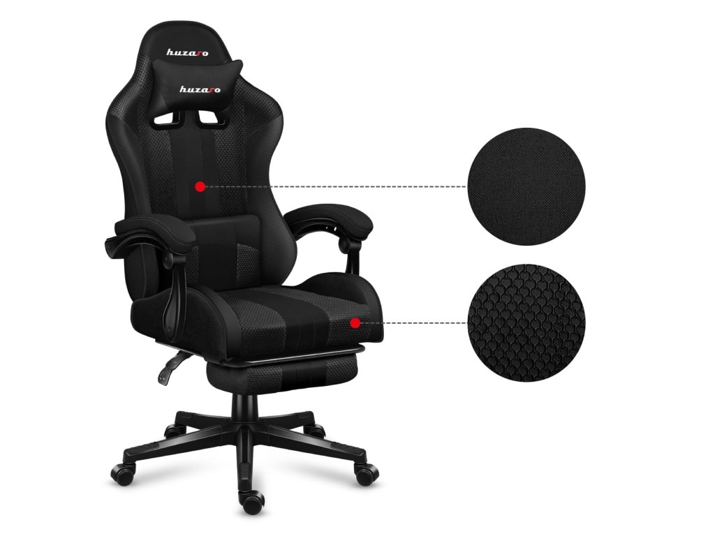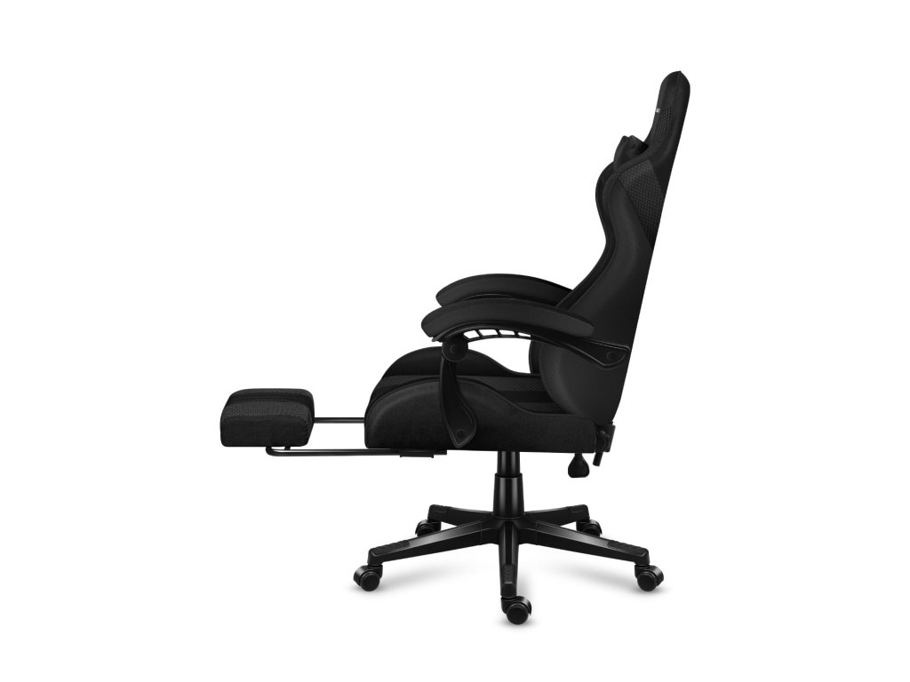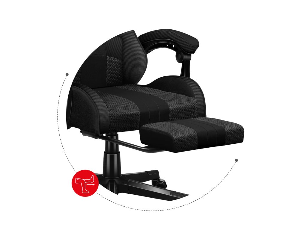 - materiálové herní křeslo s výsuvnou opěrkou nohou,