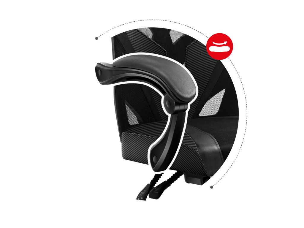Dlouhé, měkké a ergonomicky tvarované područky poskytují výbornou oporu pro předloktí. Snižují napětí ramen a horní části zad i při mnohahodinovém sezení.