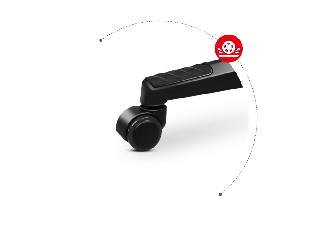 - Pět bezpečných, tichých koleček z polyuretanu a kaučuku – nepoškrábou podlahu