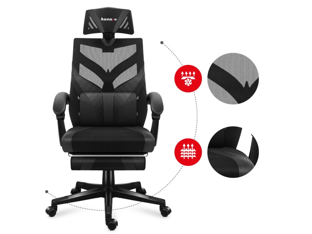 Zádová opěrka je vyrobena z technologie AiR Mesh, která zajišťuje nepřetržité proudění vzduchu a zabraňuje přehřívání těla. Síťovina je odolná, pevná a přizpůsobená dlouhodobému používání. Sedák s prodyšnou látkou a hustou pěnou zaručuje měkké, stabilní a pohodlné sezení.