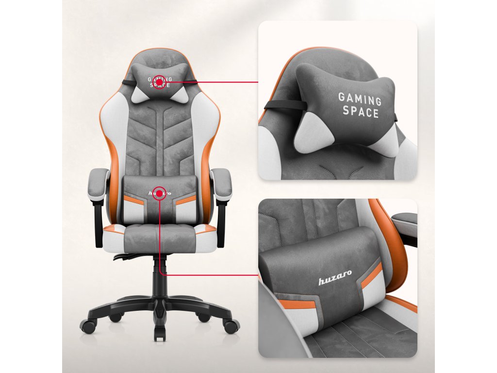 Měkký velur poskytuje příjemný kontakt s pokožkou a speciálně tvarované opěradlo s polštářkem pod hlavu odlehčuje krční páteř. Bederní polštář podporuje správné držení těla, takže i dlouhé sezení je mnohem pohodlnější a zdravější.