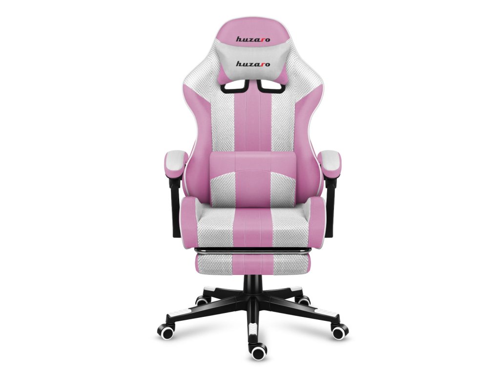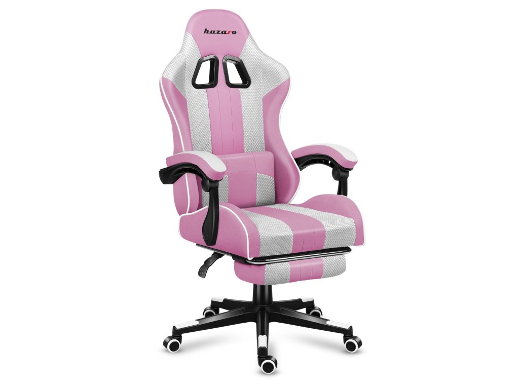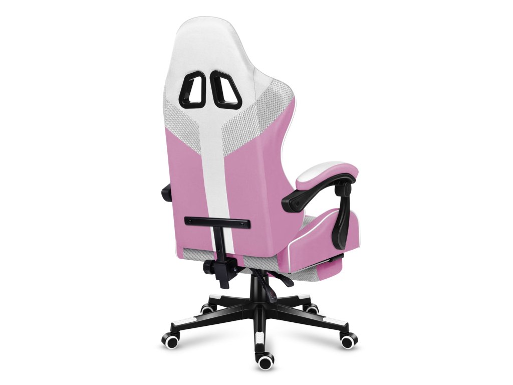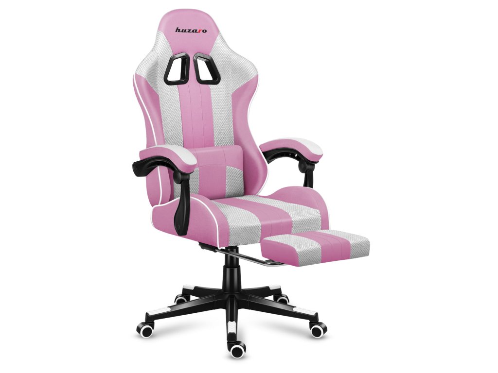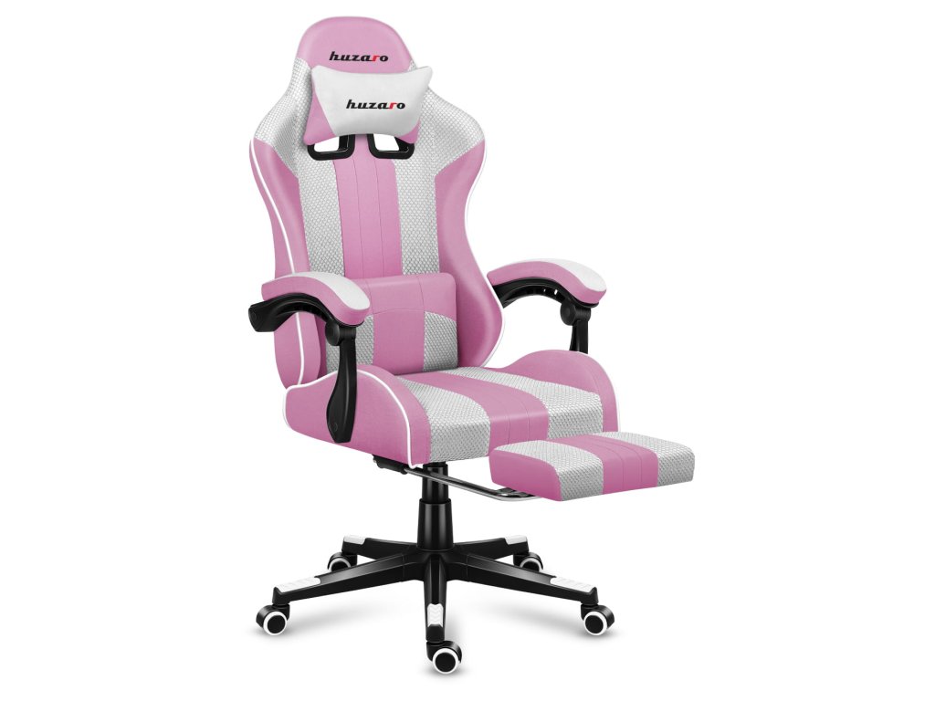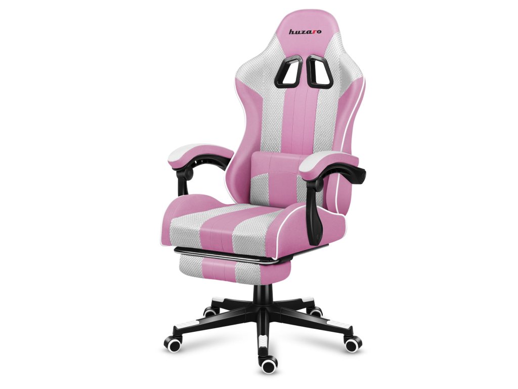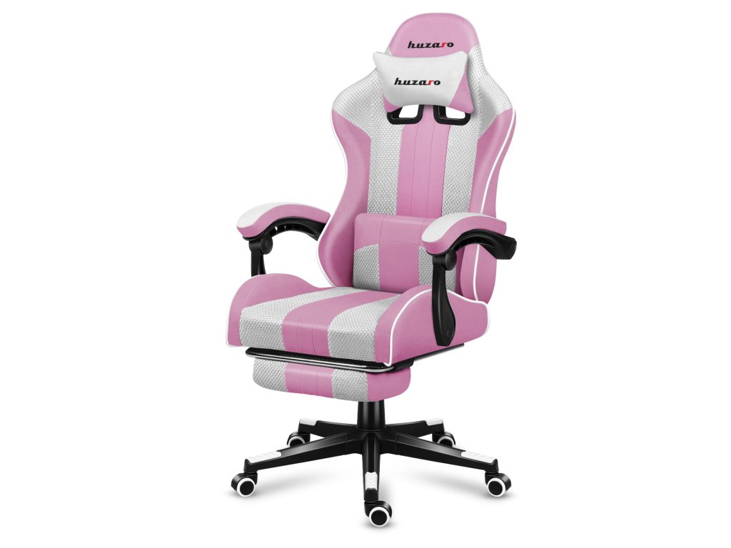- Stylová růžová herní židle s výsuvnou opěrkou nohou – ideální pro odpočinek po dlouhém dni.