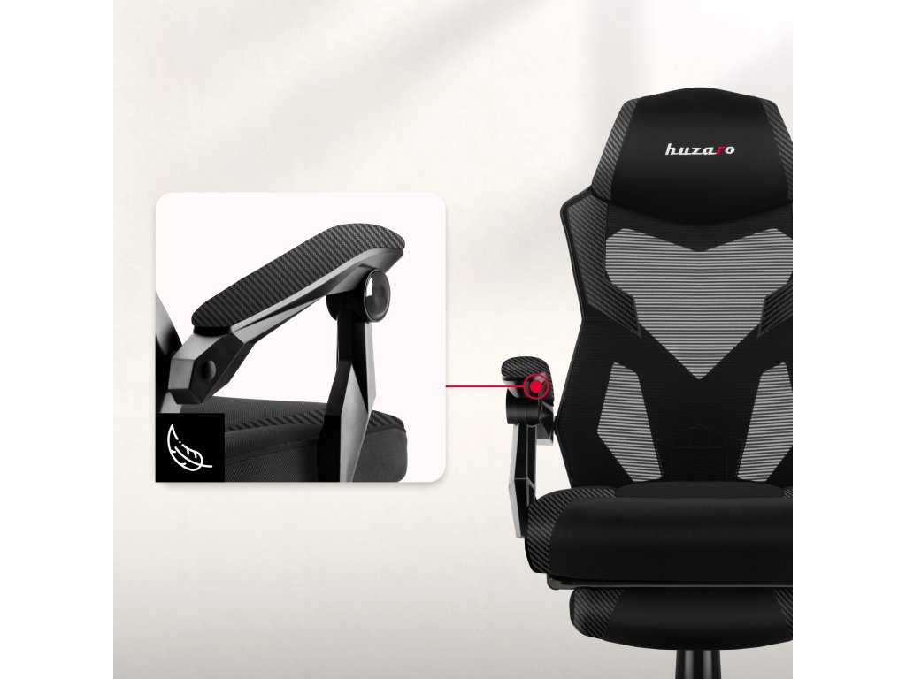 - Ergonomické, měkké područky – zajišťují pohodlnou oporu ramen i při dlouhých herních maratonech.