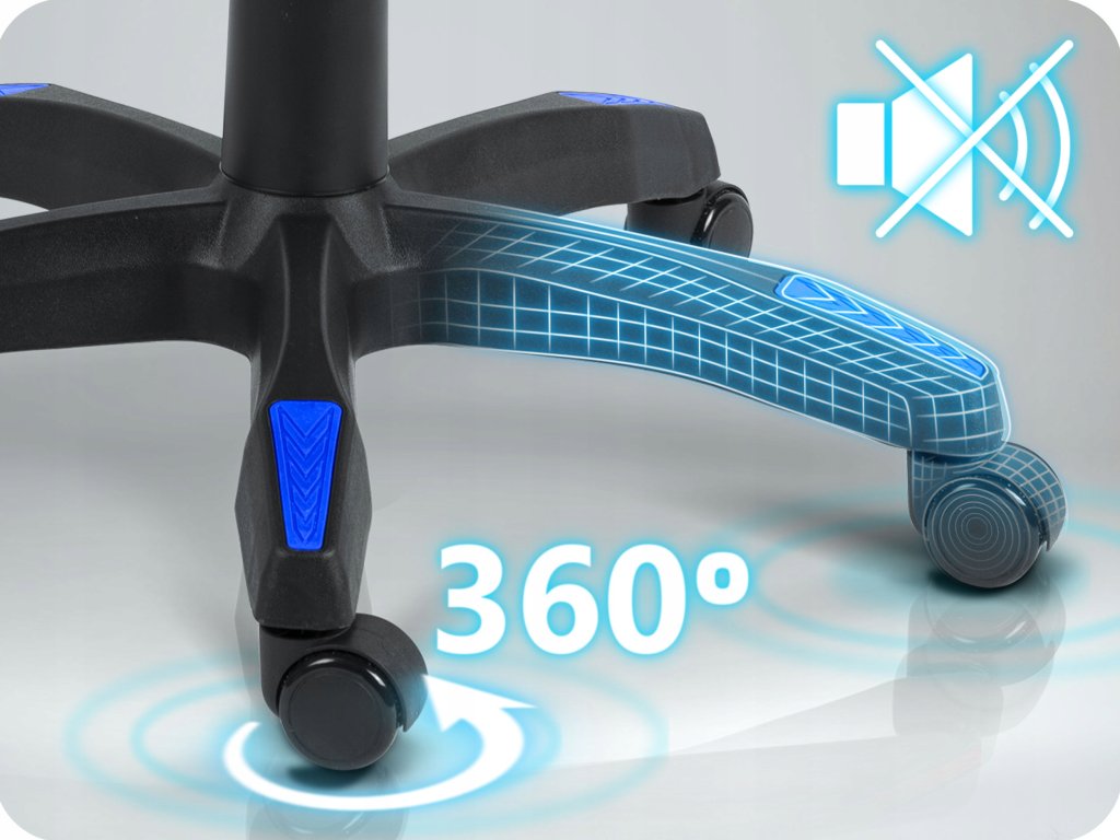 - Pogumovaná kolečka 360° zajišťují tichý pohyb bez poškrábání podlahy – ideální do domácího koutku, kanceláře i herny.
