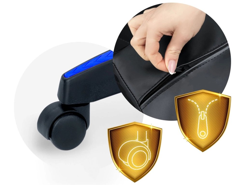 Ke křeslu dostanete zdarma dva podsedáky, které zlepší váš komfort sezení. Tvarovaný bederní polštář a hlavový polštář pomáhají udržovat ergonomické a bezpečné držení těla. Polštáře se přizpůsobí tvaru vaší postavy a zajistí pohodlí při sezení. Polštáře lze z potahu sejmout díky všitému zipu a pevná kovová konstrukce, je vybavena nylonovými a gumovými kolečky, která se tiše pohybují a nepoškrábou podlahu.
