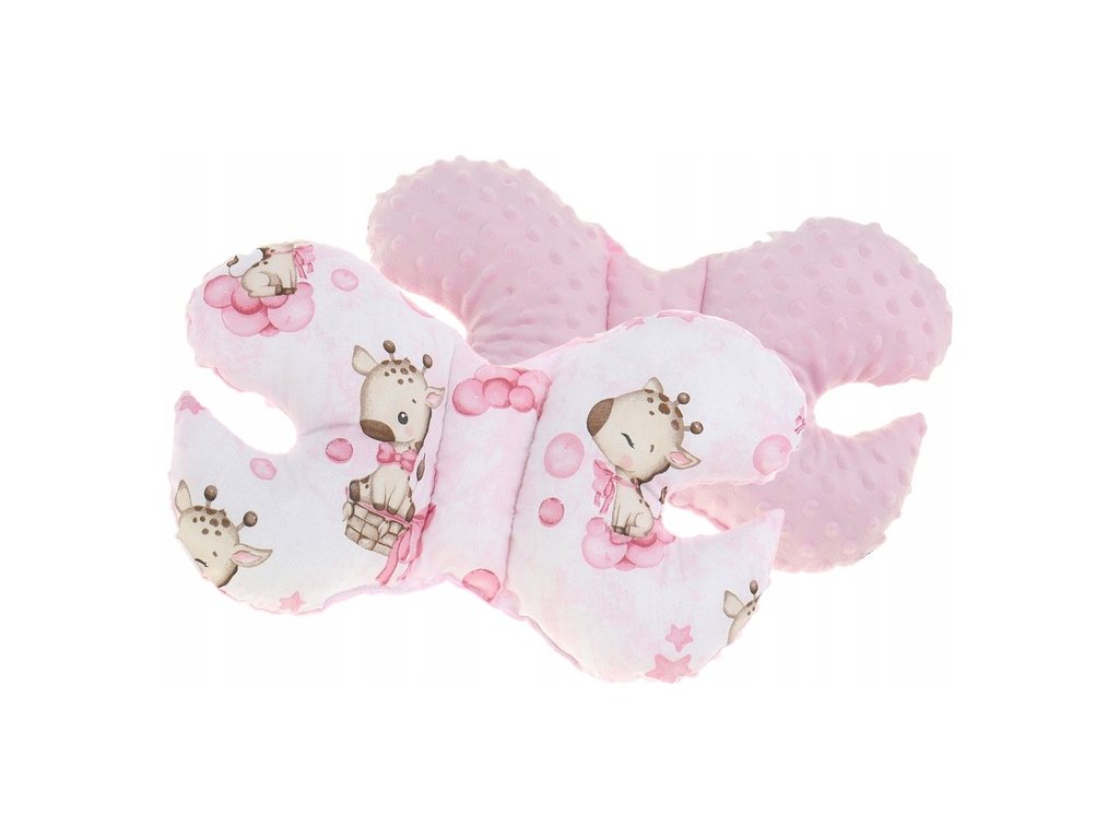 3. Oboustranný stabilizační polštářek ve tvaru motýlka bavlna/minky 24x35 cm.