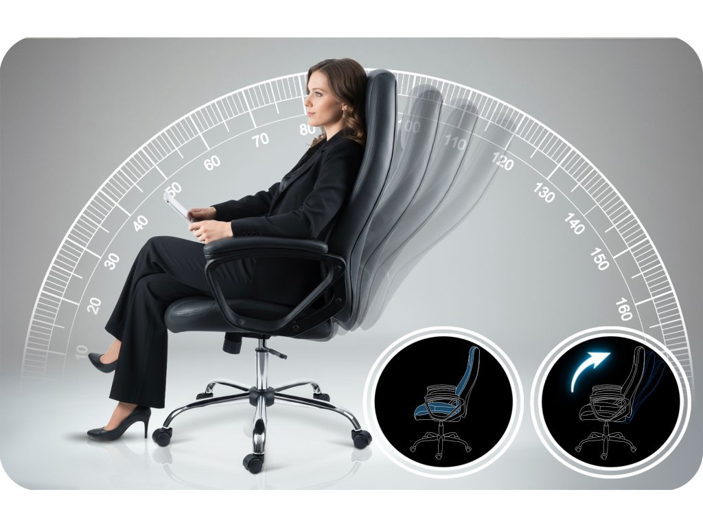 - Sklopné opěradlo – rychlá změna z pracovní polohy do relaxace.
