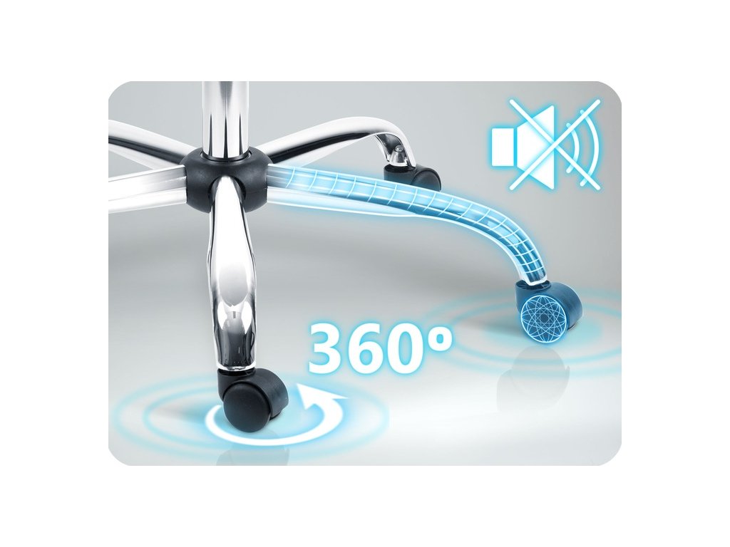- Tichá, pogumovaná kolečka 360° – plynulý pohyb bez poškození podlahy.