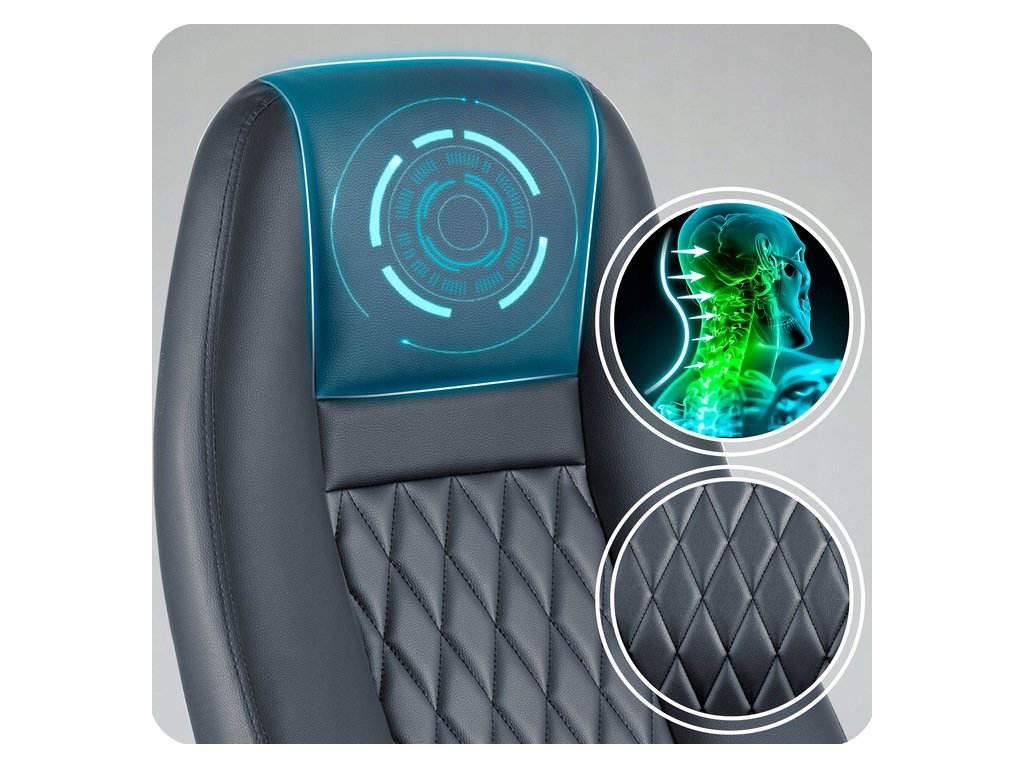 - Ergonomická opěrka hlavy rovnoměrně rozkládá tlak, odlehčuje svaly krku.