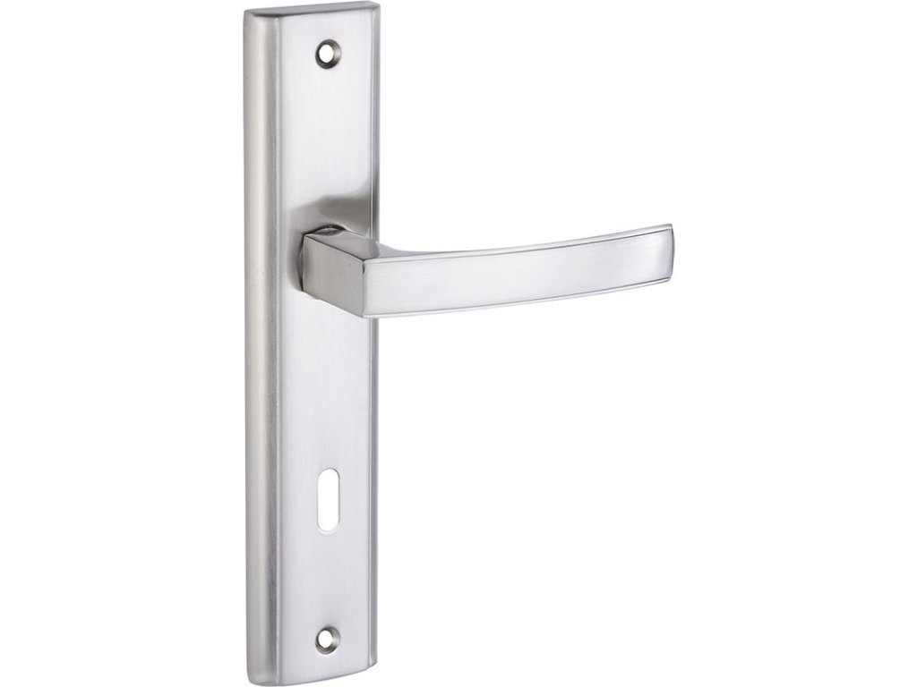Klika na dlouhém štítu ARIA je elegantním a funkčním řešením určeným pro interiérové dveře, kde je požadováno klasické uzamykání na klíč. Nadčasový design a vyvážené proporce umožňují snadné začlenění do různých stylů interiérů – od klasických až po moderní.