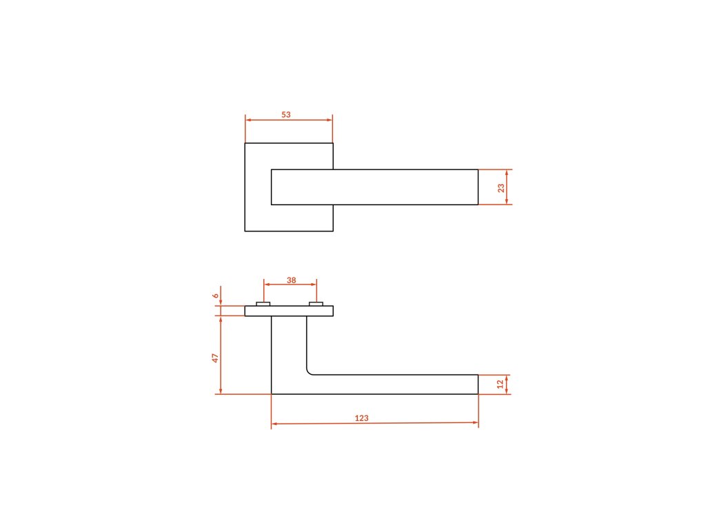 Model KVADRATO se vyznačuje minimalistickou slim rozetou o rozměrech 53 × 53 mm, která dodává dveřím čistý a současný vzhled. Zaoblené hrany rukojeti podtrhují estetiku kliky a zároveň zvyšují ergonomii při každodenním používání.