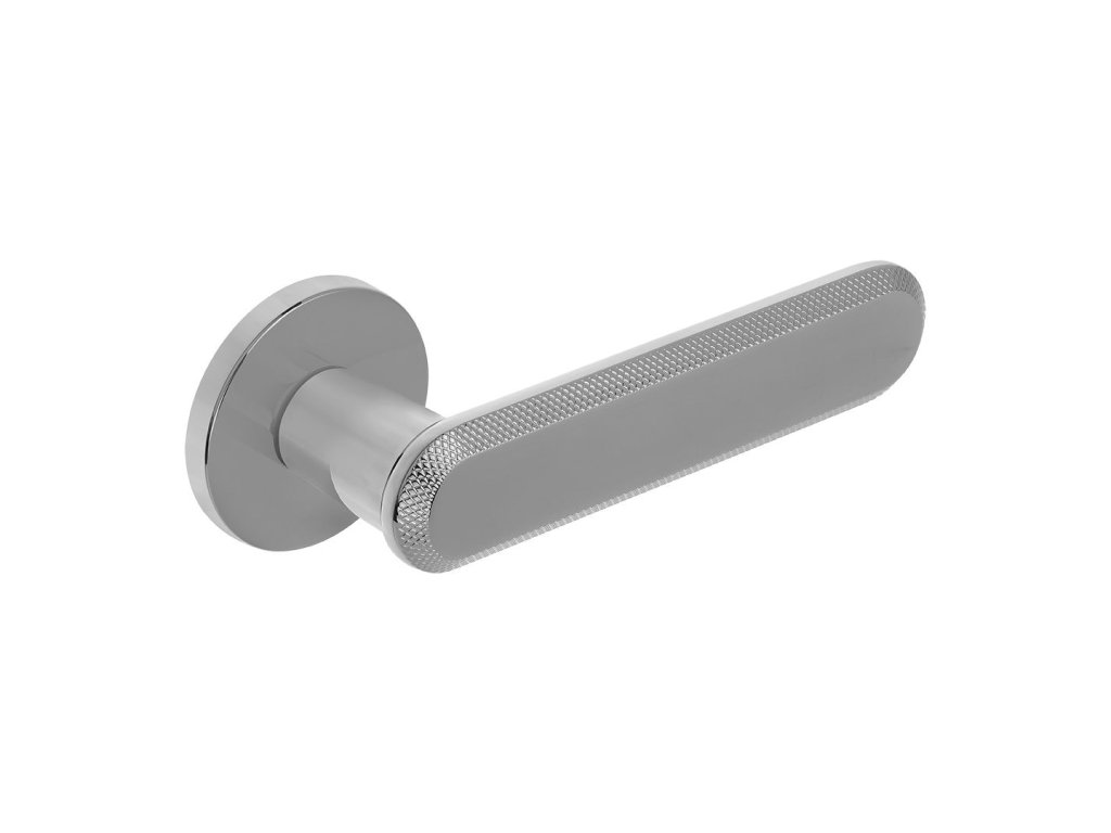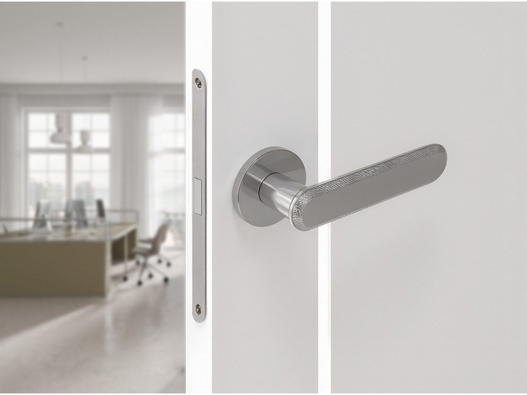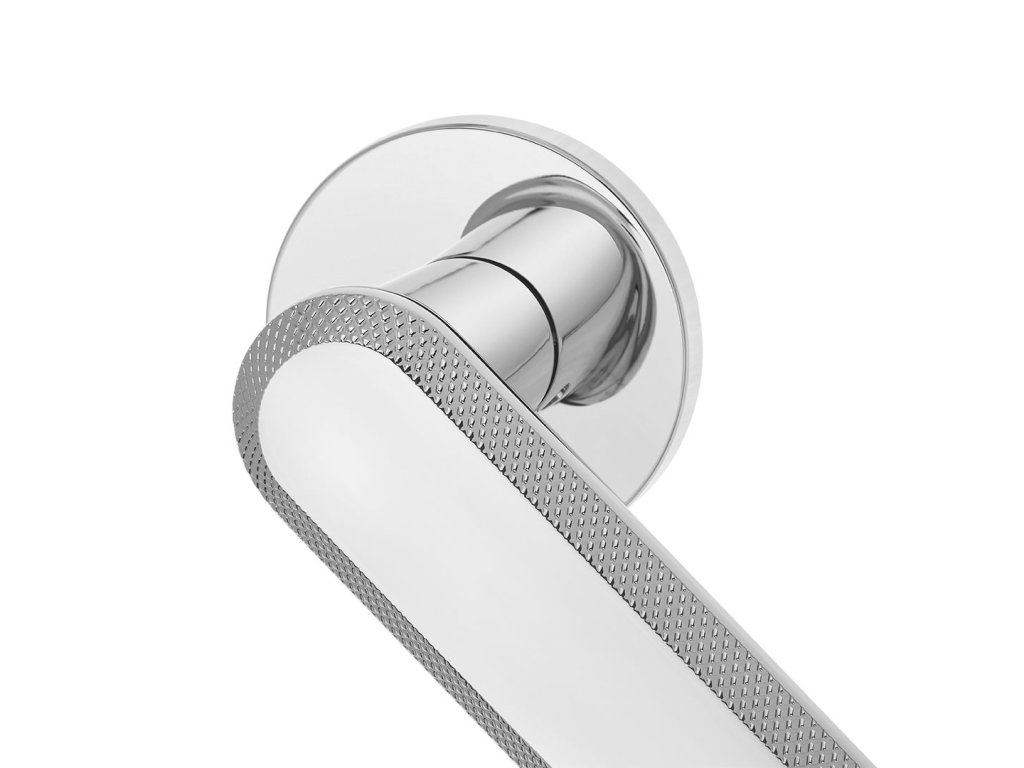 Klika na rozetě RUGOS je novinkou, která spojuje nadčasový design s moderní elegancí. Její charakteristická rukojeť s jemnými dekorativními drážkami po okrajích připomíná subtilní šperkařské detaily a dodává dveřím jedinečný a sofistikovaný vzhled. Minimalistická střední část rukojeti vytváří harmonický kontrast k ozdobným prvkům a podtrhuje moderní charakter kliky.