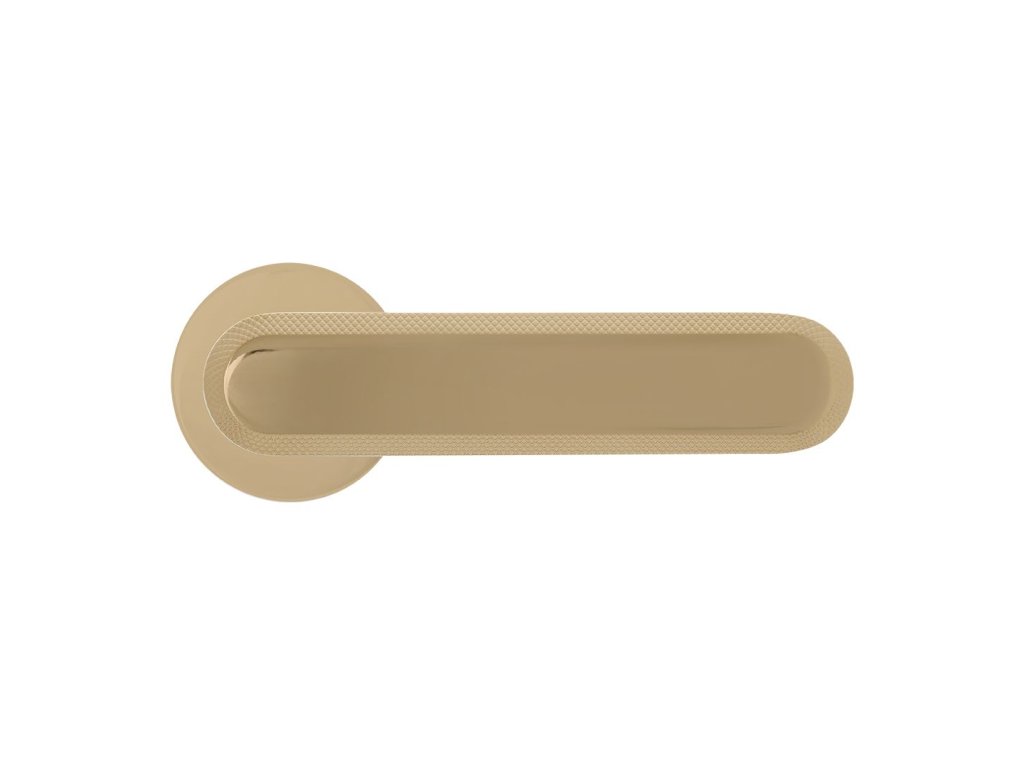 Klika na rozetě RUGOS je novinkou, která spojuje nadčasový design s moderní elegancí. Její charakteristická rukojeť s jemnými dekorativními drážkami po okrajích připomíná subtilní šperkařské detaily a dodává dveřím jedinečný a sofistikovaný vzhled. Minimalistická střední část rukojeti vytváří harmonický kontrast k ozdobným prvkům a podtrhuje moderní charakter kliky.