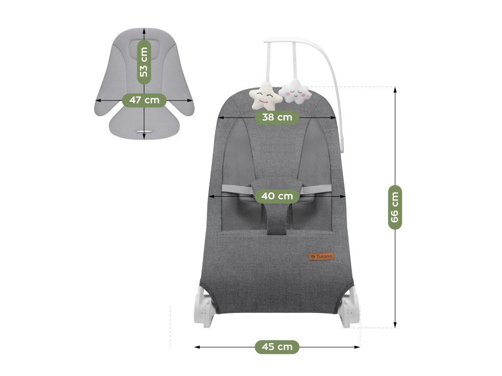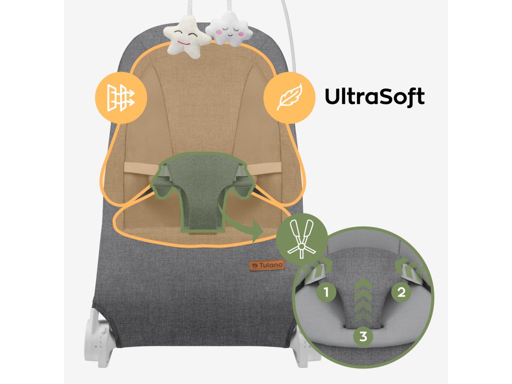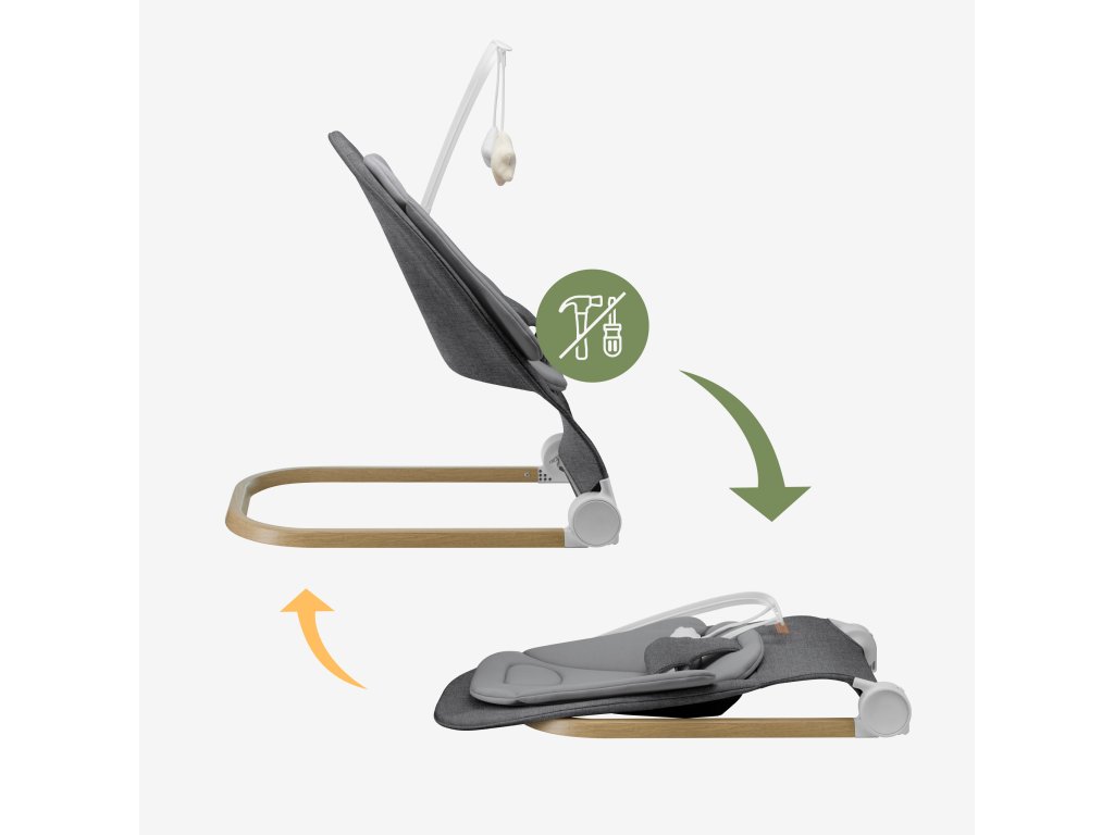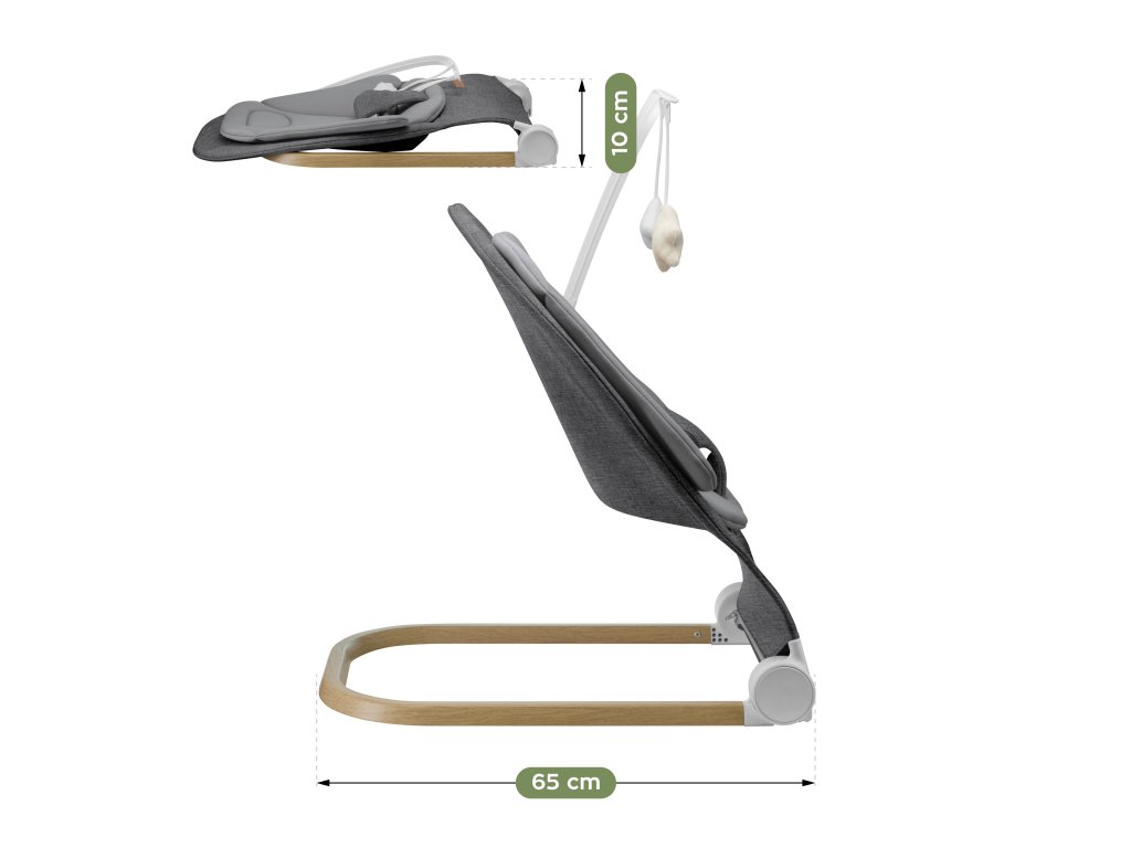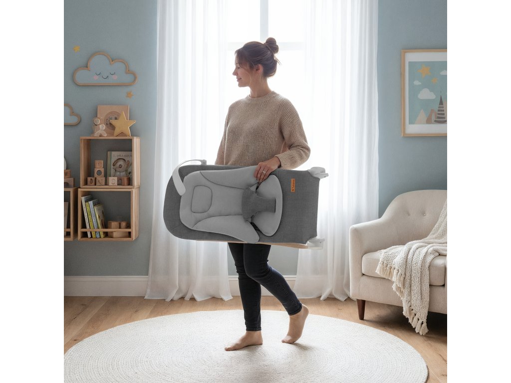 Díky ergonomickému tvaru, měkkým materiálům a přirozenému houpání vytváří pro dítě prostor plný harmonie, jemných podnětů a klidného objevování světa.