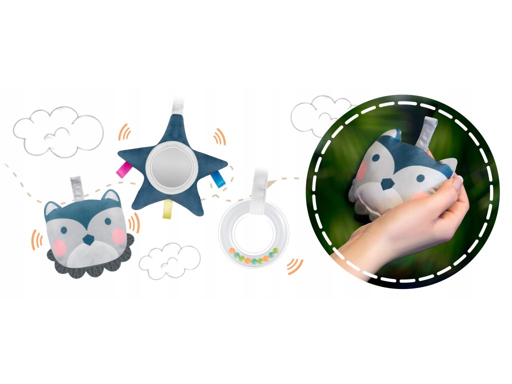 - odnímatelný oblouk s šustivými hračkami, které stimulují zrak a hmat,