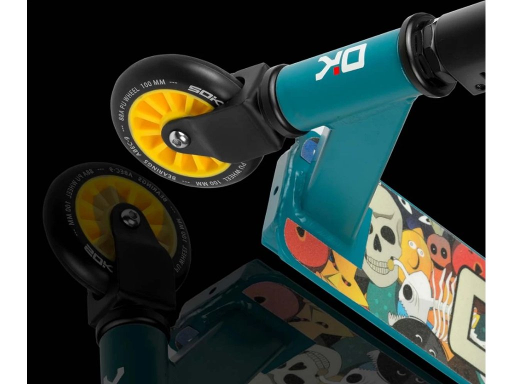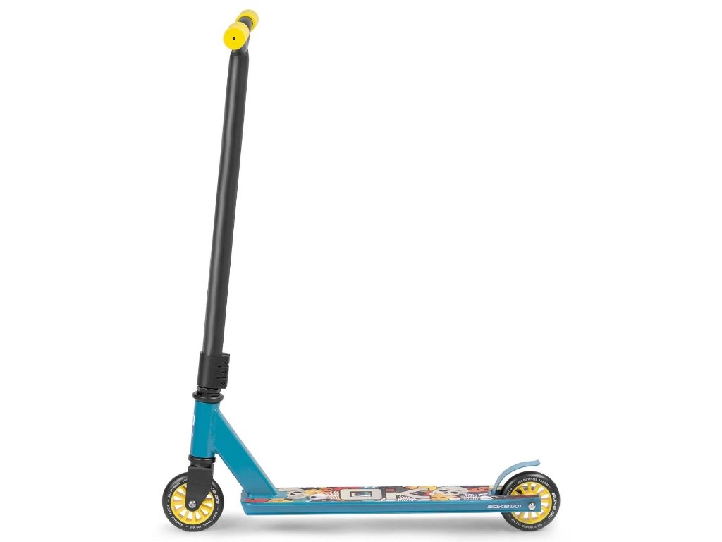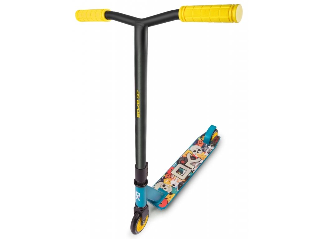 Freestylová koloběžka,která byla stvořena pro jízdu a triky ve skateparku , otestováno profesionálními jezdci. Koloběžka je vytvořená pomocí pokročilých technologií, vyřezaná z jednoho bloku hliníku - slitina 6061 pro nejvyšší odolnost. Koloběžka je vybavena: Integrovaným hlavovým složením - řidítka se otáčí mnohem rychleji, ocelovou vidlicí, díky které je koloběžka přizpůsobena těm nejlepším, pokročilým trikům, řídítka z chromové oceli, gripy ze super měkkého a příjemného materiálu, zajišťující nejvyšší jízdní komfort. Ušetřete nákupem profesionálního vybavení, usnadněte si vývoj. Do sady přidáváme fantastické samolepky a černý náramek!