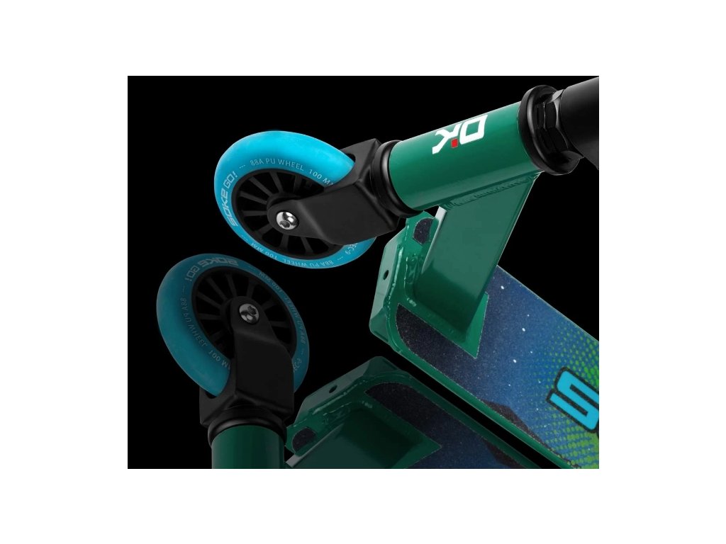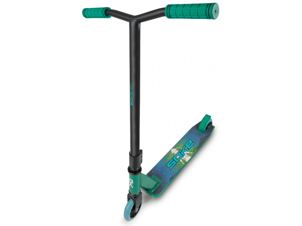 Freestylová koloběžka,která byla stvořena pro jízdu a triky ve skateparku , otestováno profesionálními jezdci. Koloběžka je vytvořená pomocí pokročilých technologií, vyřezaná z jednoho bloku hliníku - slitina 6061 pro nejvyšší odolnost. Koloběžka je vybavena: Integrovaným hlavovým složením - řidítka se otáčí mnohem rychleji, ocelovou vidlicí, díky které je koloběžka přizpůsobena těm nejlepším, pokročilým trikům, řídítka z chromové oceli, gripy ze super měkkého a příjemného materiálu, zajišťující nejvyšší jízdní komfort. Ušetřete nákupem profesionálního vybavení, usnadněte si vývoj. Do sady přidáváme fantastické samolepky a černý náramek!