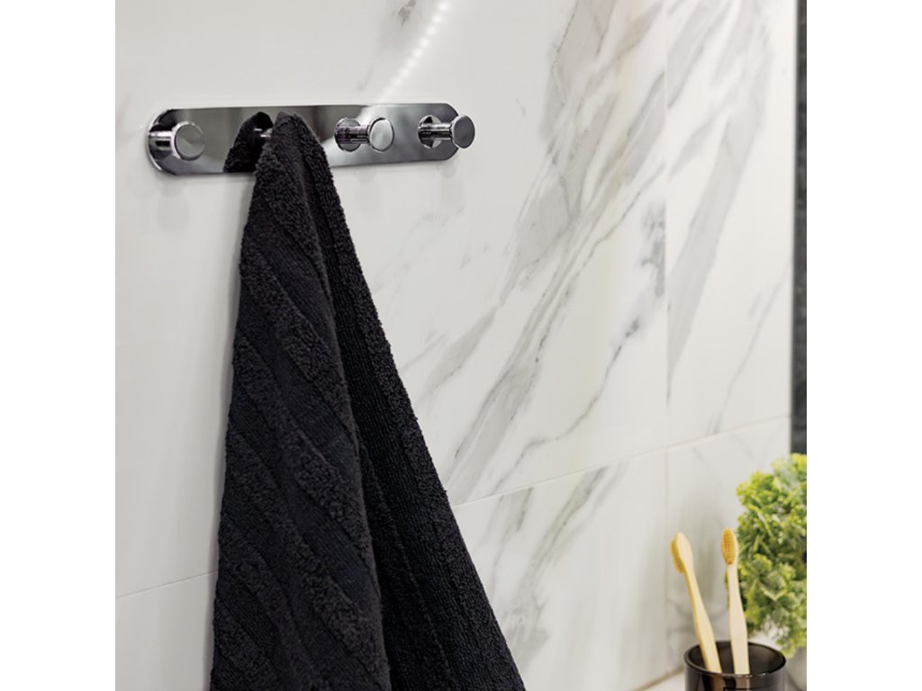 Čtyři precizně tvarované háčky umožňují pohodlné zavěšení ručníků, županů nebo koupelnových doplňků a poskytují dostatek prostoru i v menších místnostech.