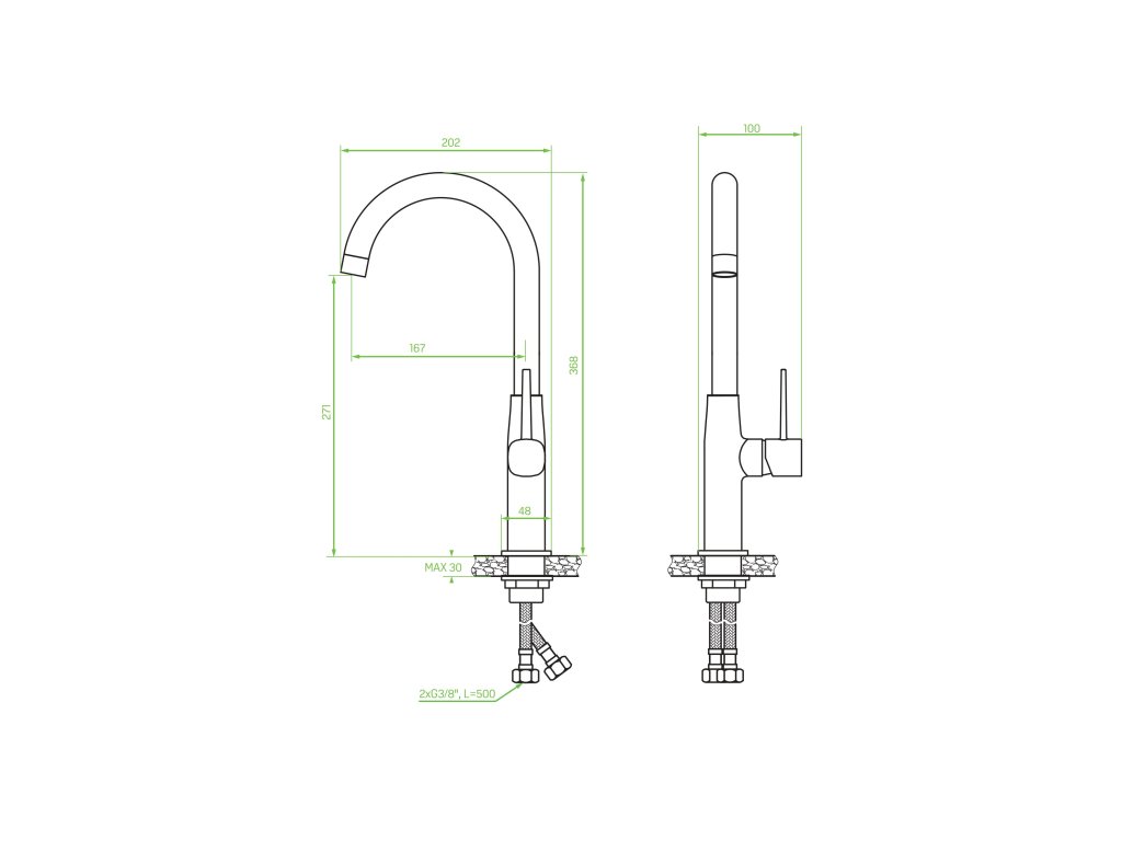 - délka připojovacích hadiček: 500 mm