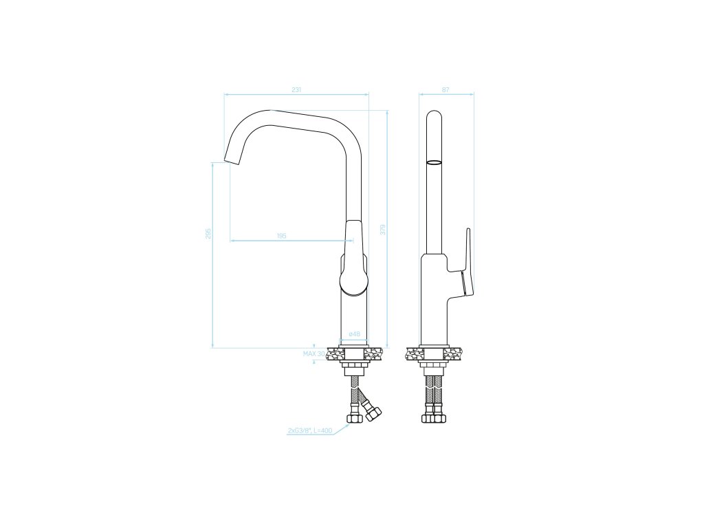 | Délka připojovacích hadiček: | 400 mm |