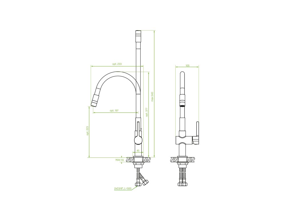 - délka připojovacích hadiček: 500 mm