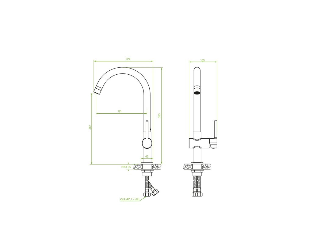 - délka připojovacích hadiček: 500 mm