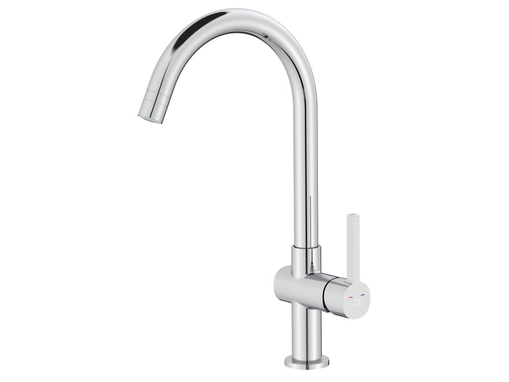 Otočná výlevka ve tvaru písmene U poskytuje dostatek prostoru a volnosti pohybu při práci u dřezu. Snadno ji nastavíte podle potřeby, což je praktické zejména u dvoudřezových řešení nebo při manipulaci s větším nádobím.