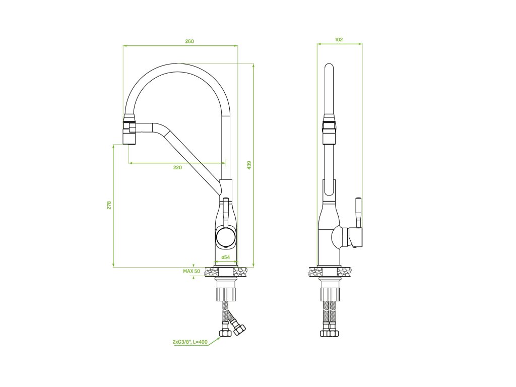 - délka připojovacích hadiček: 400 mm