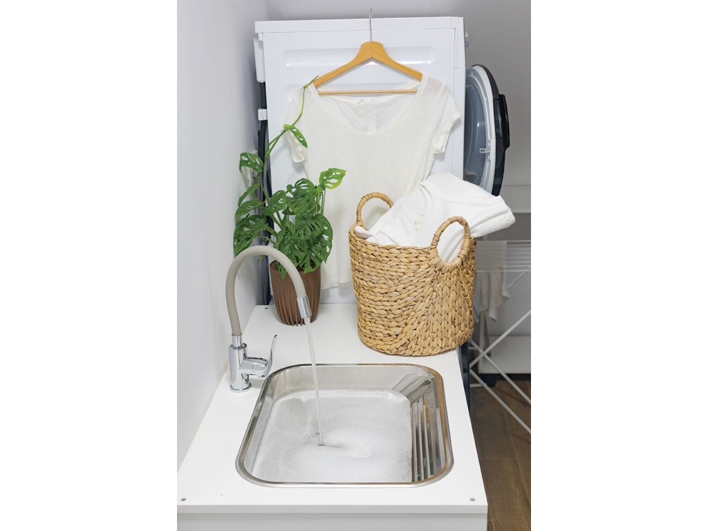 Baterie ELZA je vybavena flexibilní výlevkou, která umožňuje snadné nasměrování proudu vody přesně tam, kde je potřeba. Maximální dosah výlevky až 360 mm zajišťuje pohodlné používání při mytí nádobí, oplachování potravin i napouštění větších nádob. Toto řešení je vhodné jak pro jednodřezová, tak i dvoudřezová uspořádání.